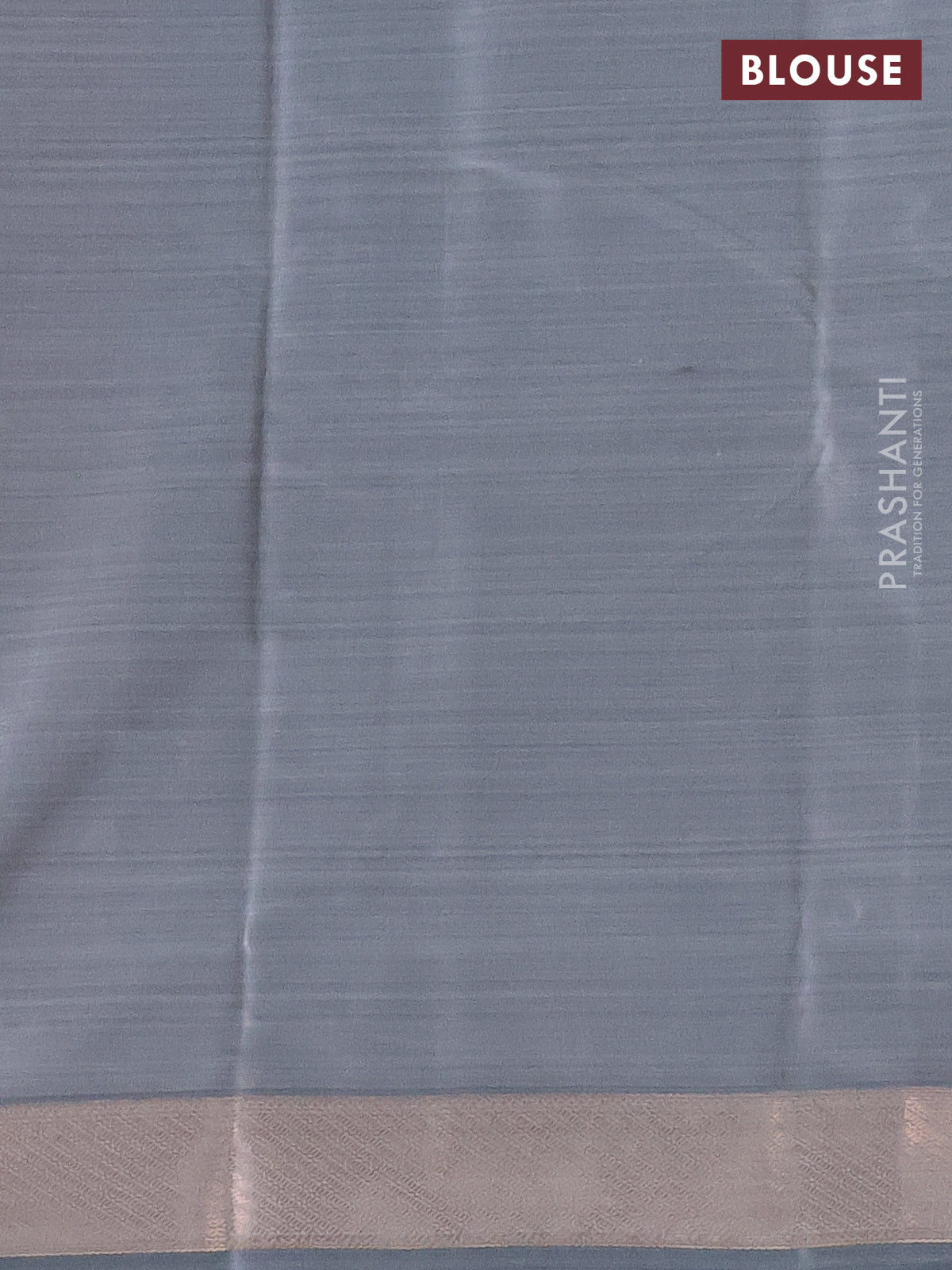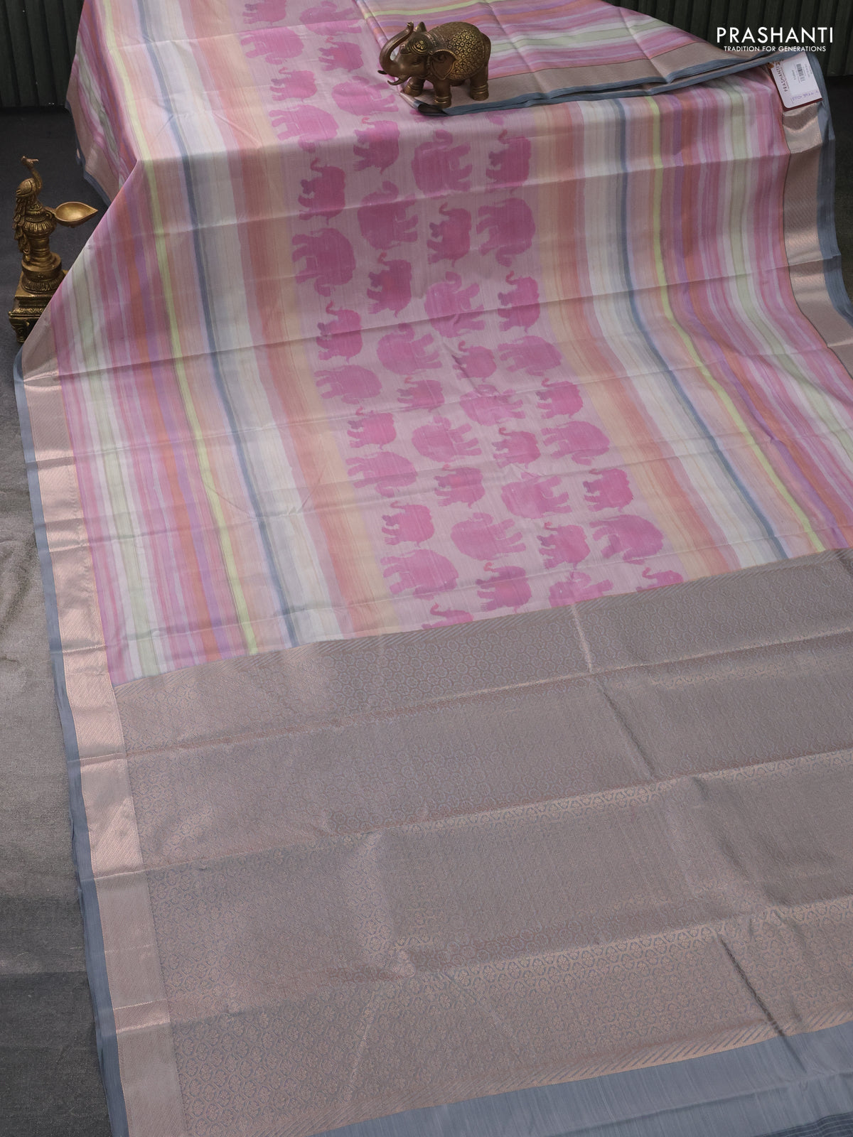 Bangalori semi silk saree pastel pink and grey with elephant butta ikat weaves and zari woven border