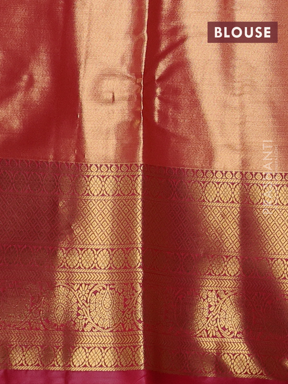 Bangalori tissue silk saree peach shade and reddish pink with allover zari woven brocade weaves and long zari woven border