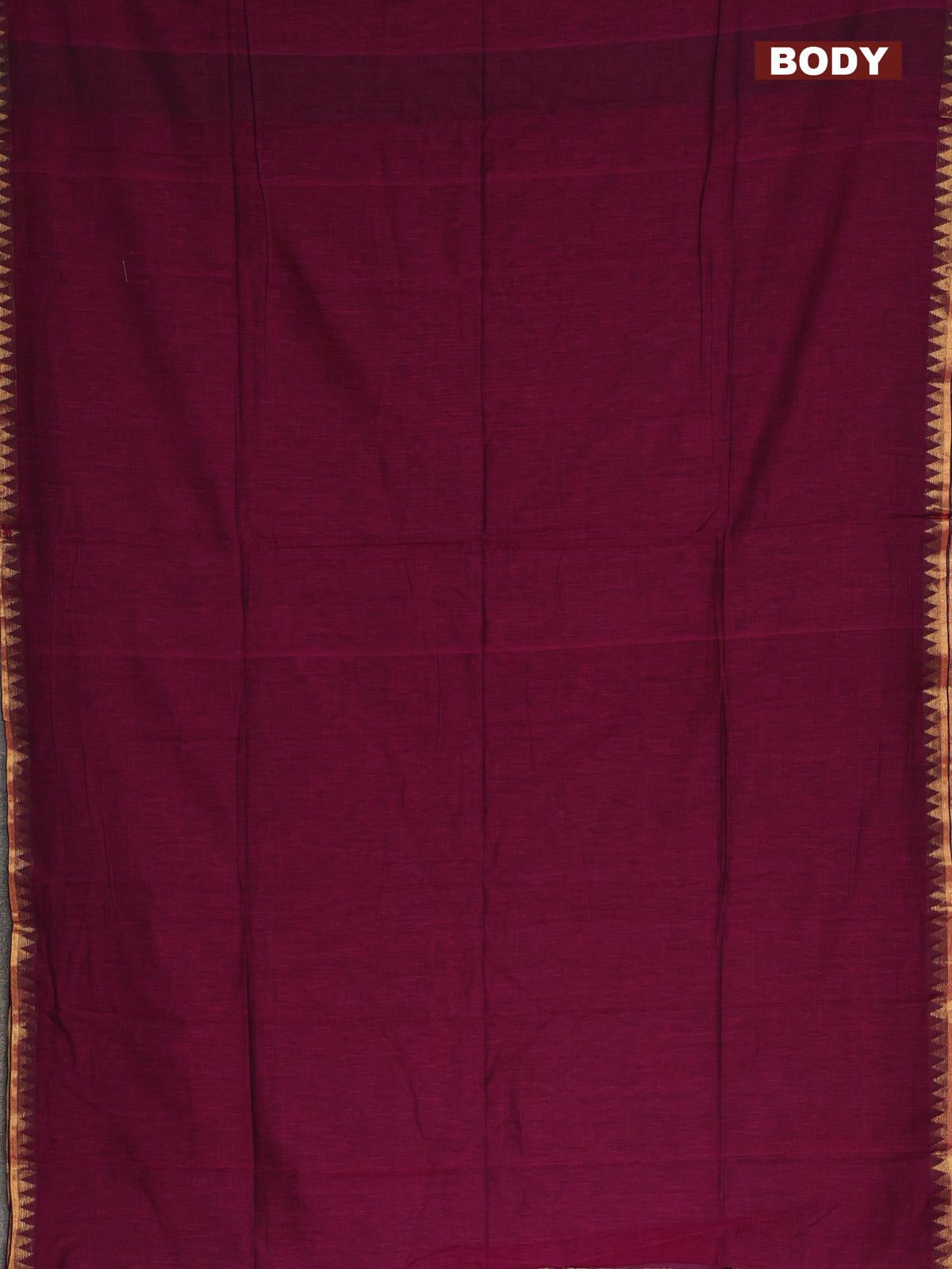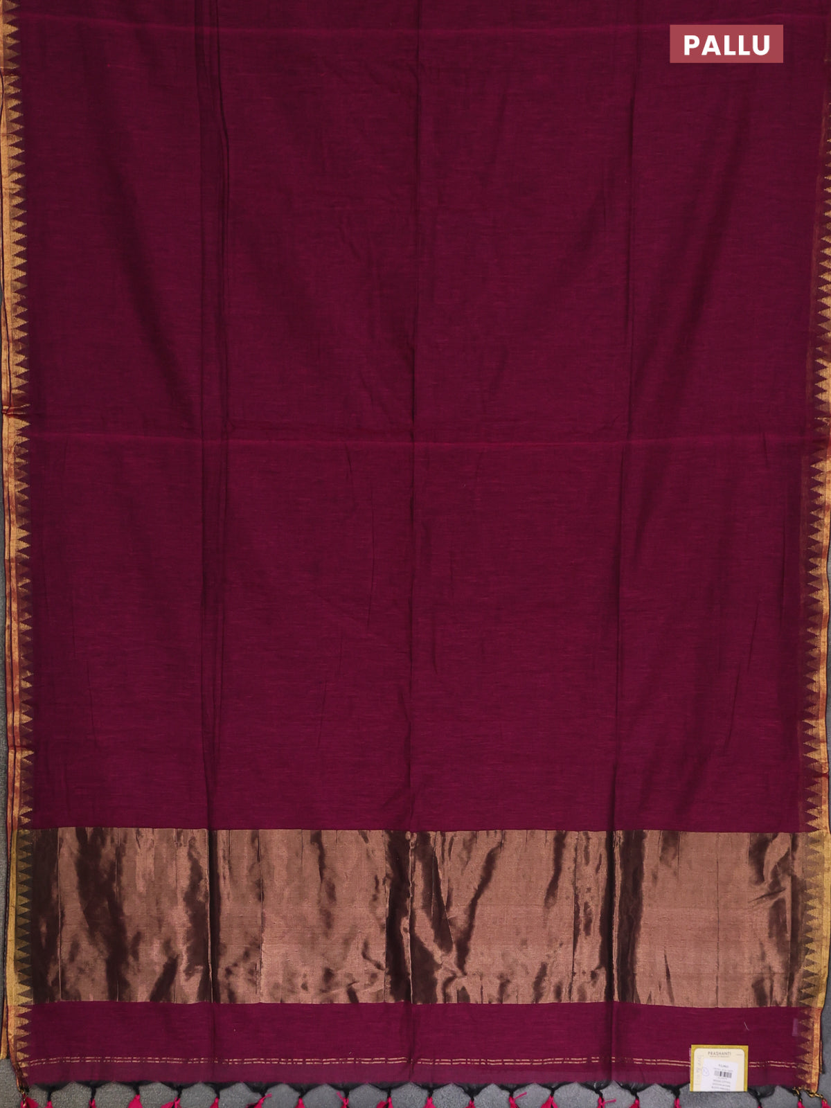 Bengal soft cotton saree magenta pink and blue with plain body and zari woven border