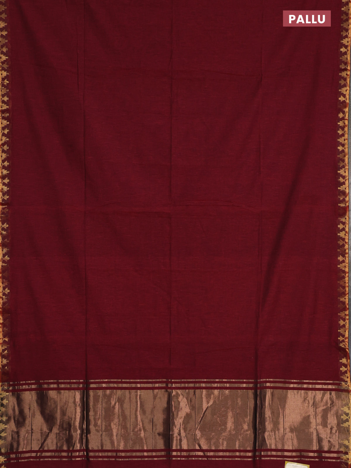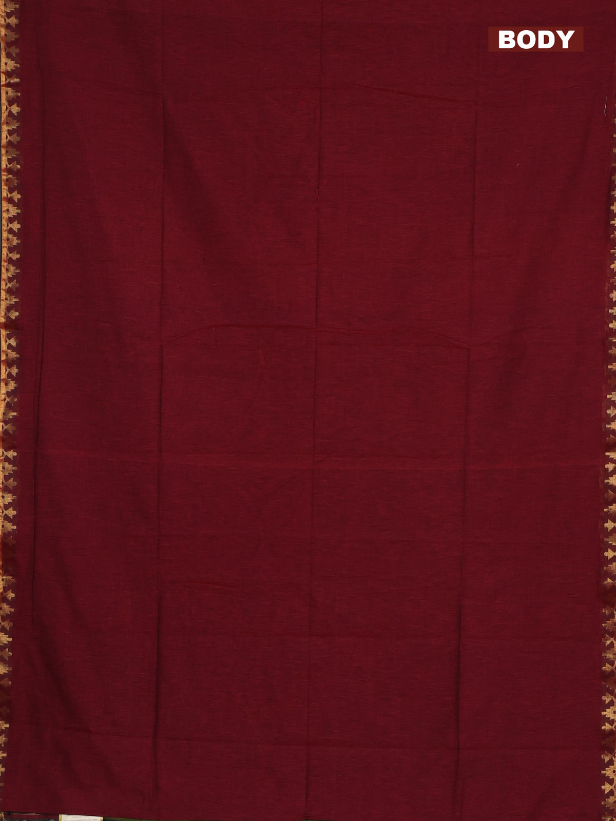 Bengal soft cotton saree maroon and blue with plain body and zari woven border
