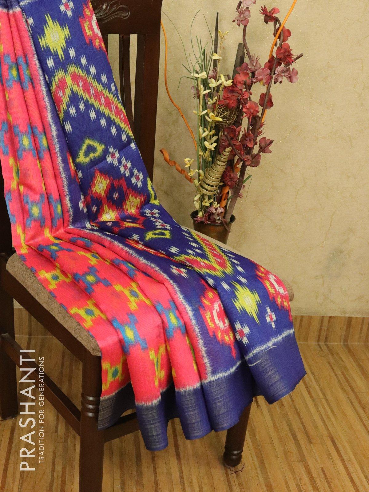 Bhagalpuri saree pink and blue with allover ikat prints and simple zari border - TFR5898