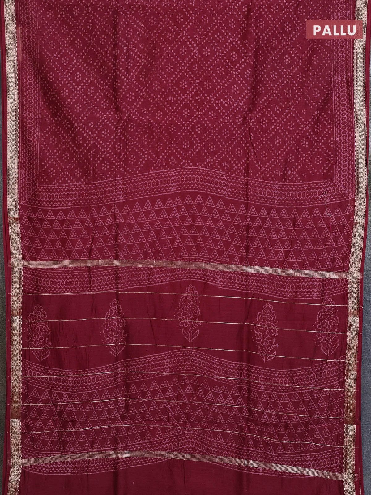 Chanderi bagru saree maroon with allover prints and maheshwari border