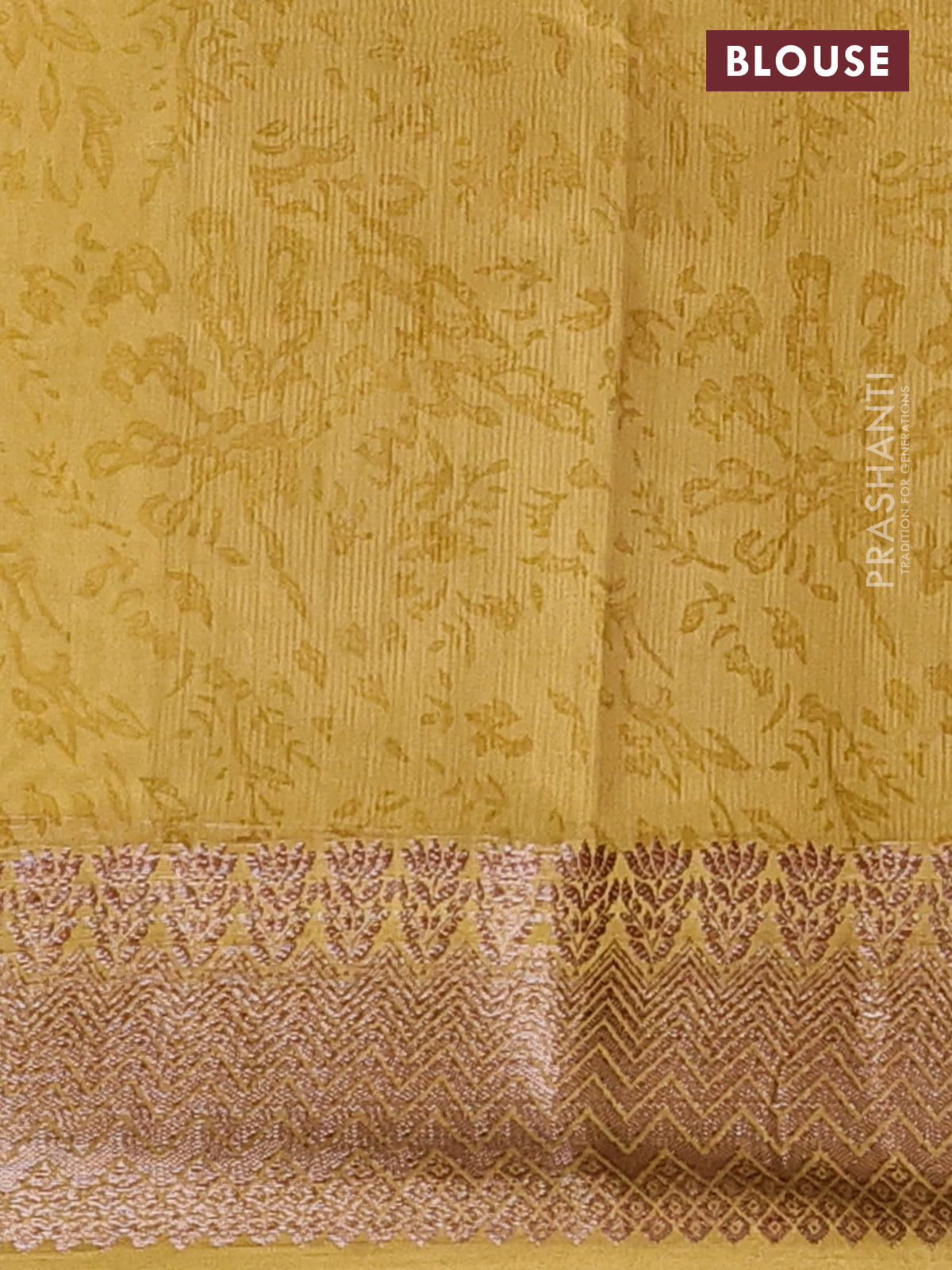 Chanderi silk cotton saree mustard shade with allover floral prints and banarasi style border