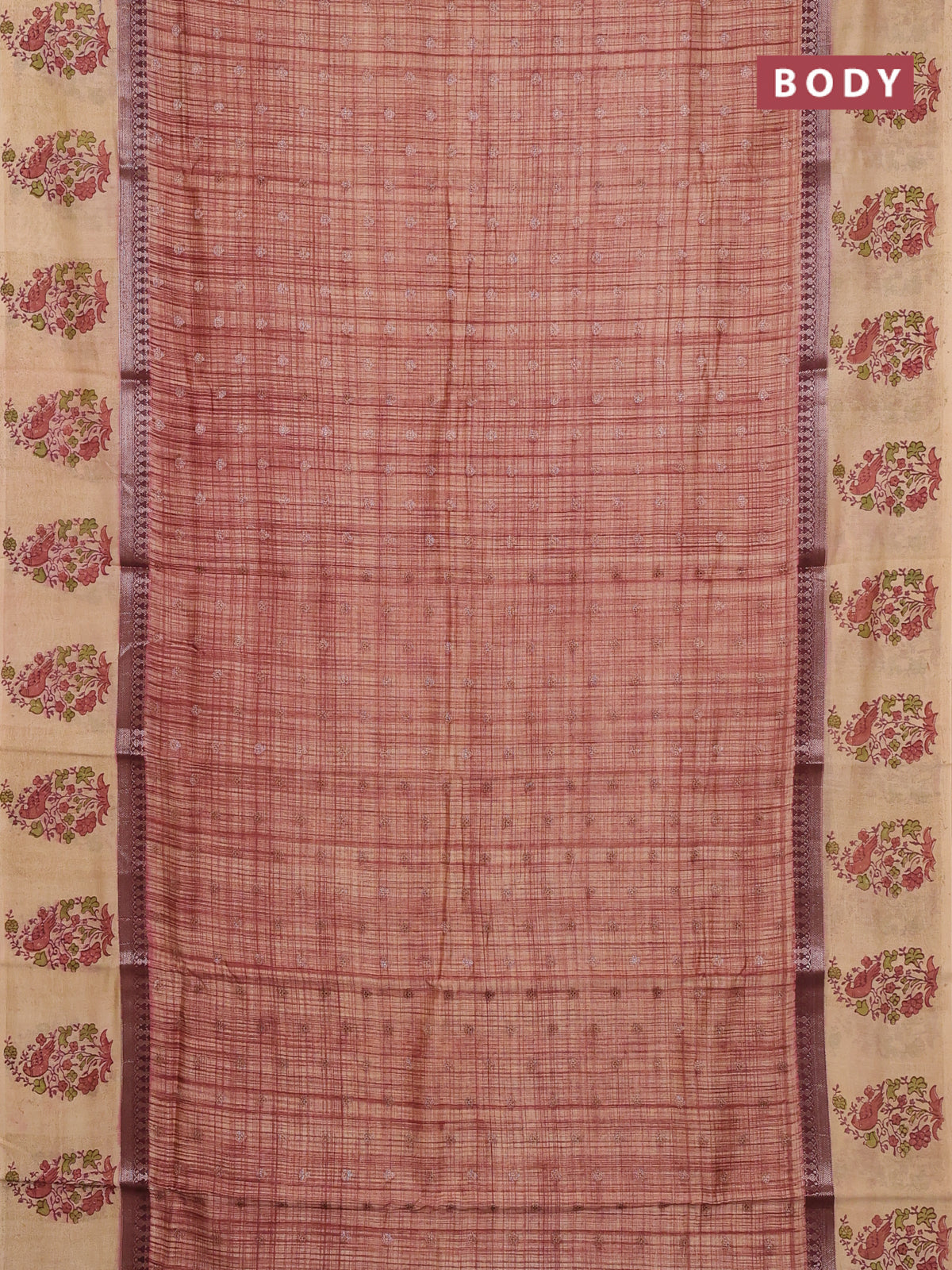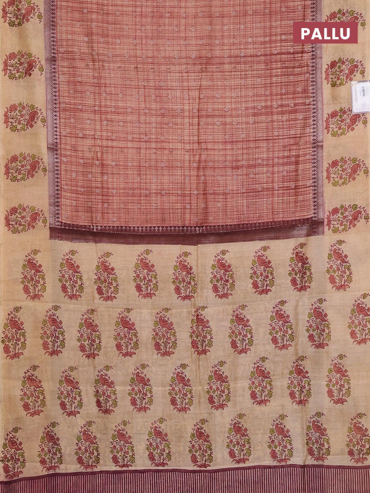 Chanderi silk cotton saree rust shade and beige with allover zari buttas & prints and printed butta border
