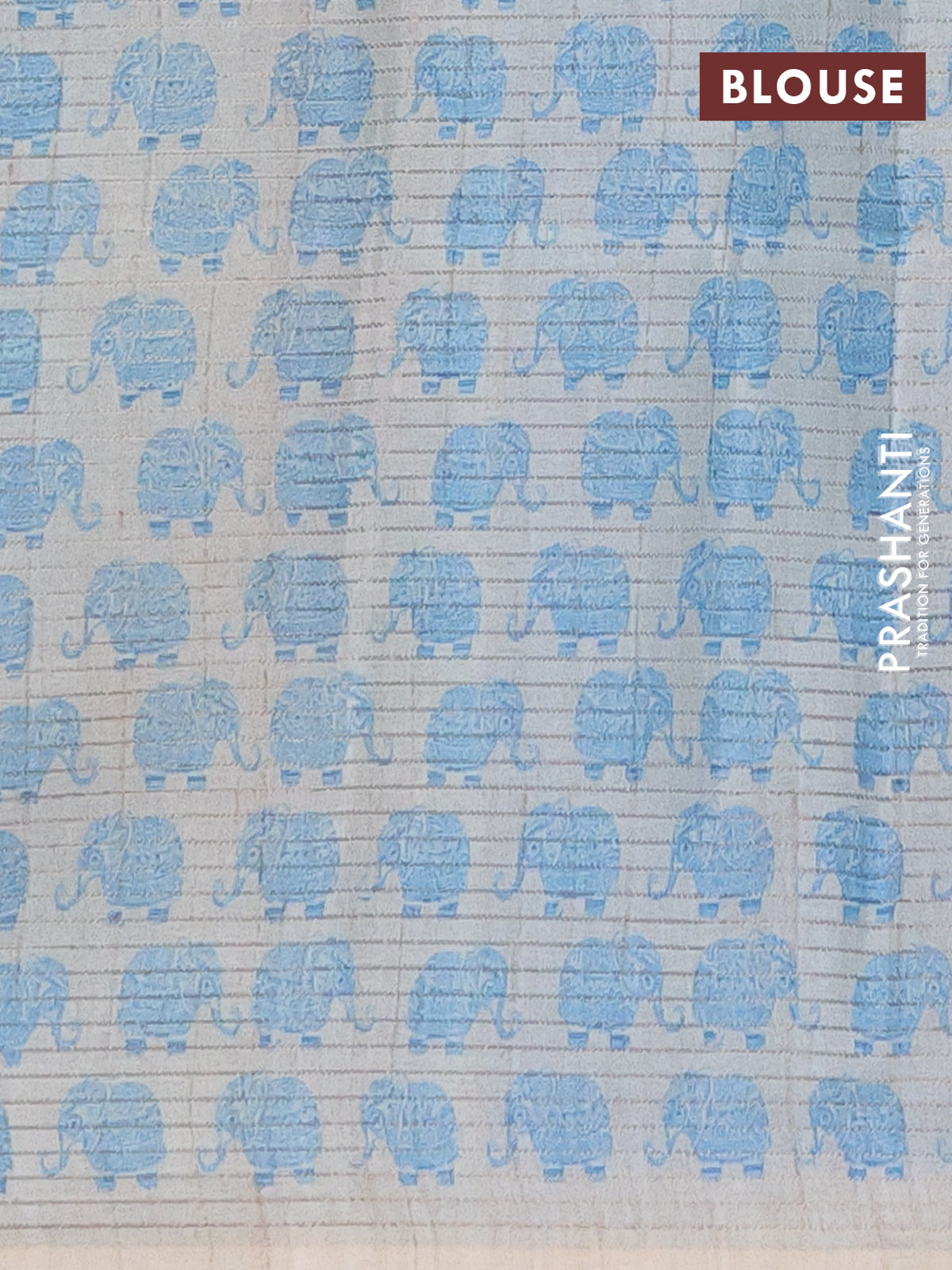 Chappa saree light blue and grey with allover small zari checked pattern and elephant butta prints