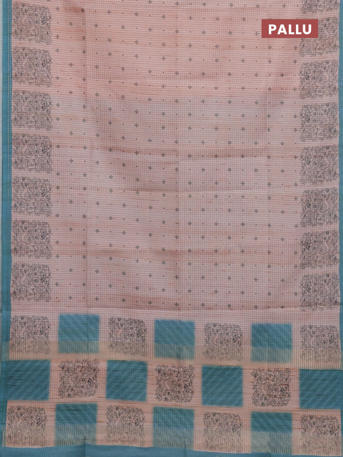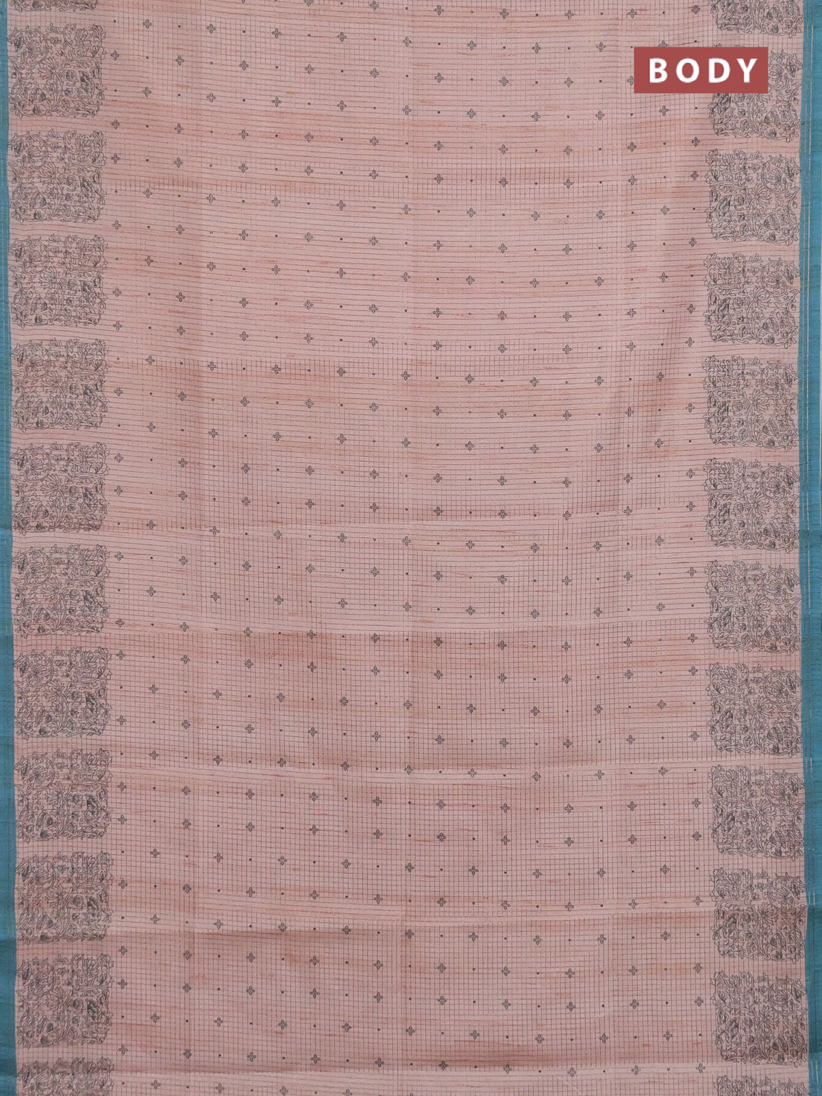 Chappa saree peach shade and teal blue with allover small zari checked pattern & butta prints and printed border