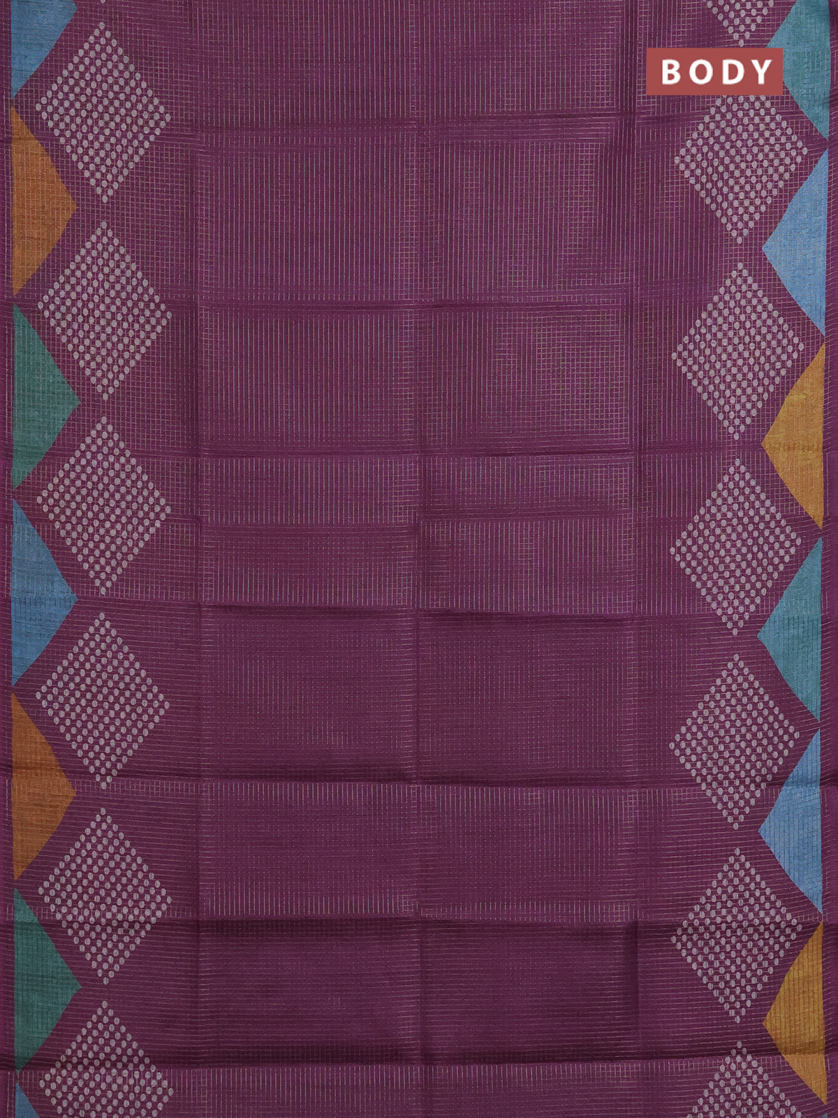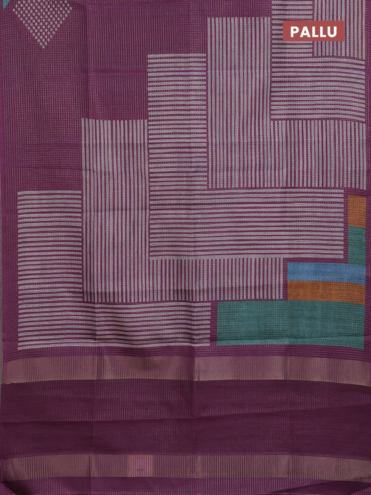 Chappa saree purple and grey with allover small zari checked pattern and printed border