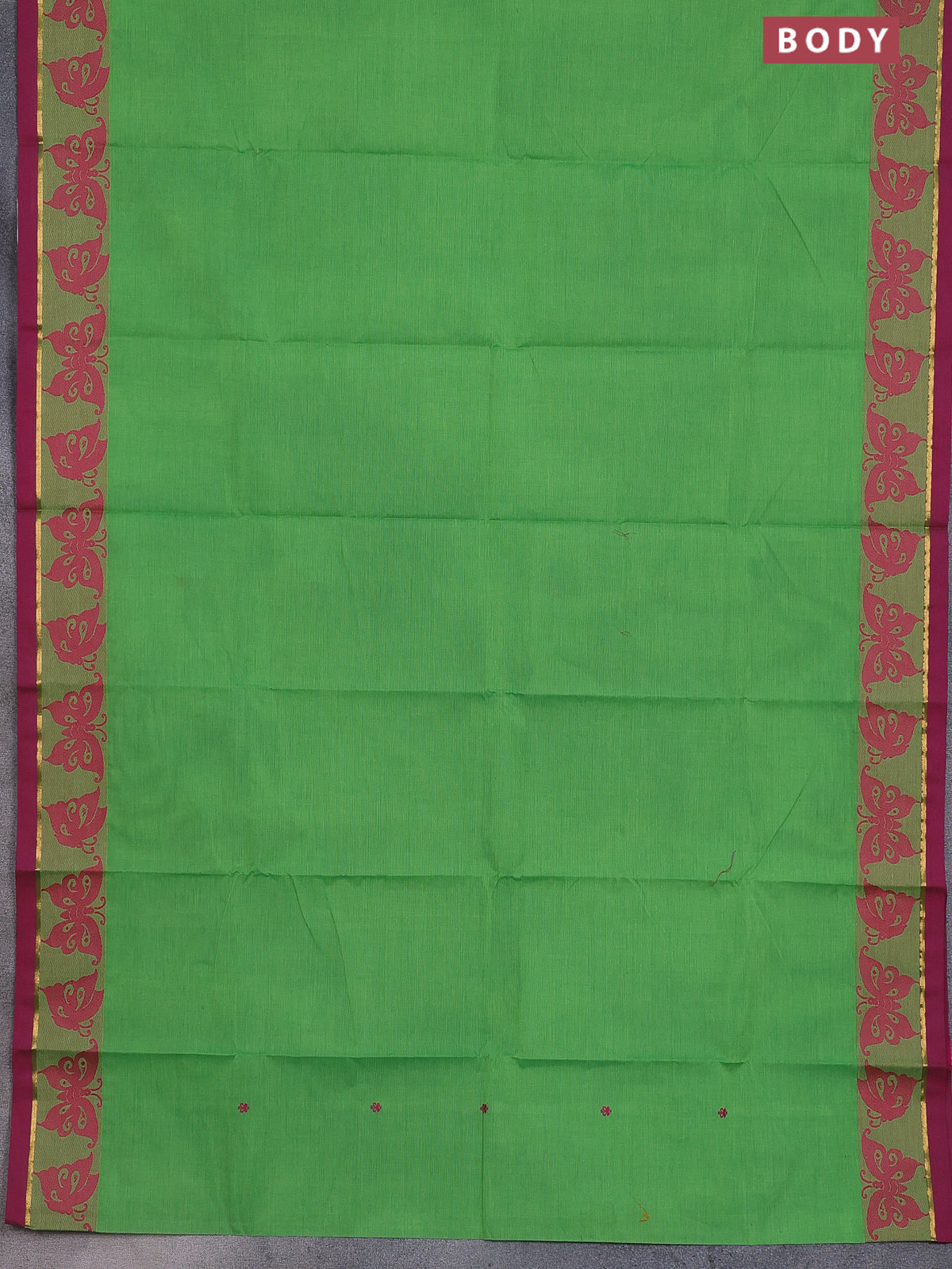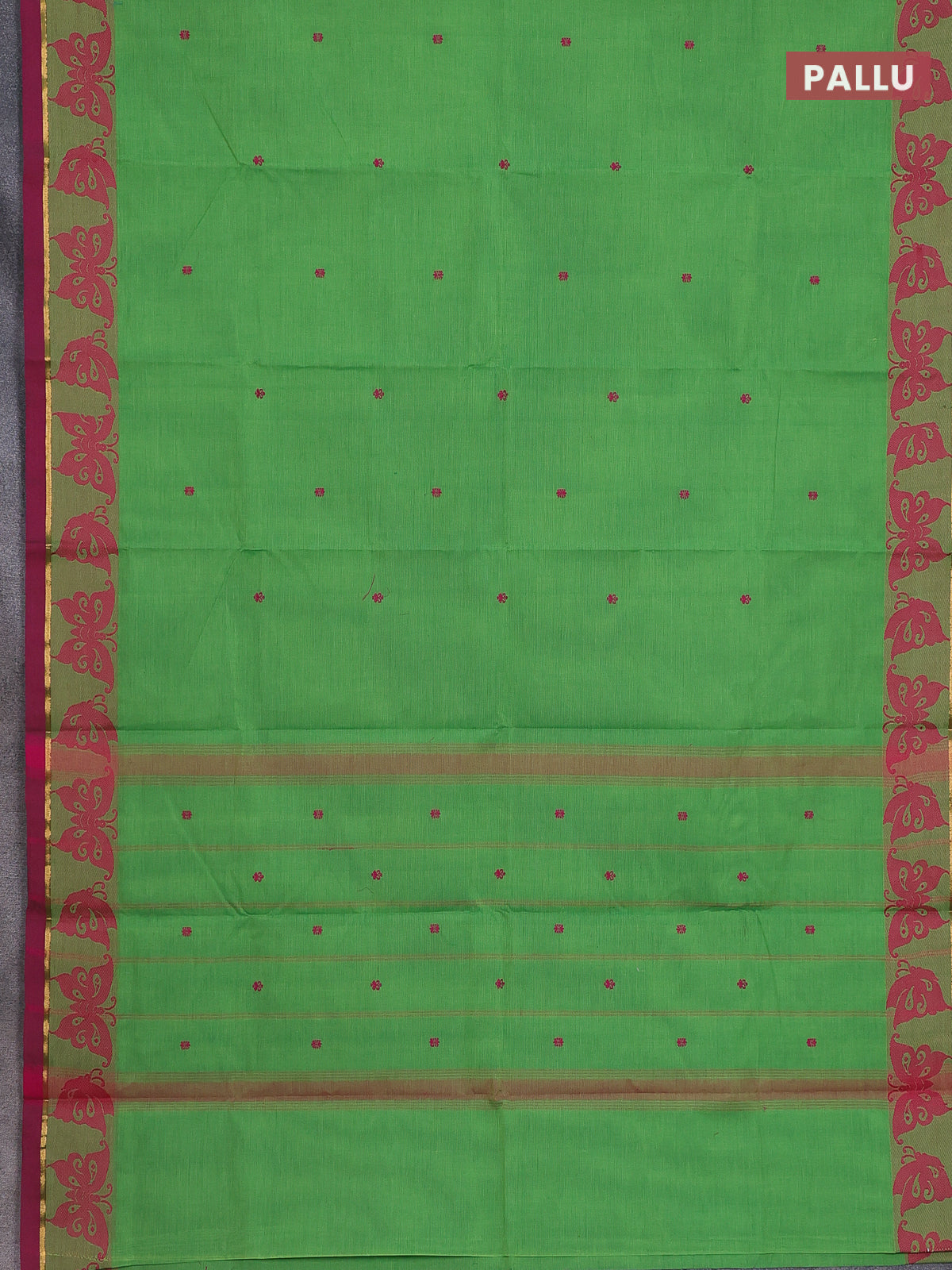 Chettinad cotton saree parrot green and magenta pink with thread woven buttas and thread & zari woven border