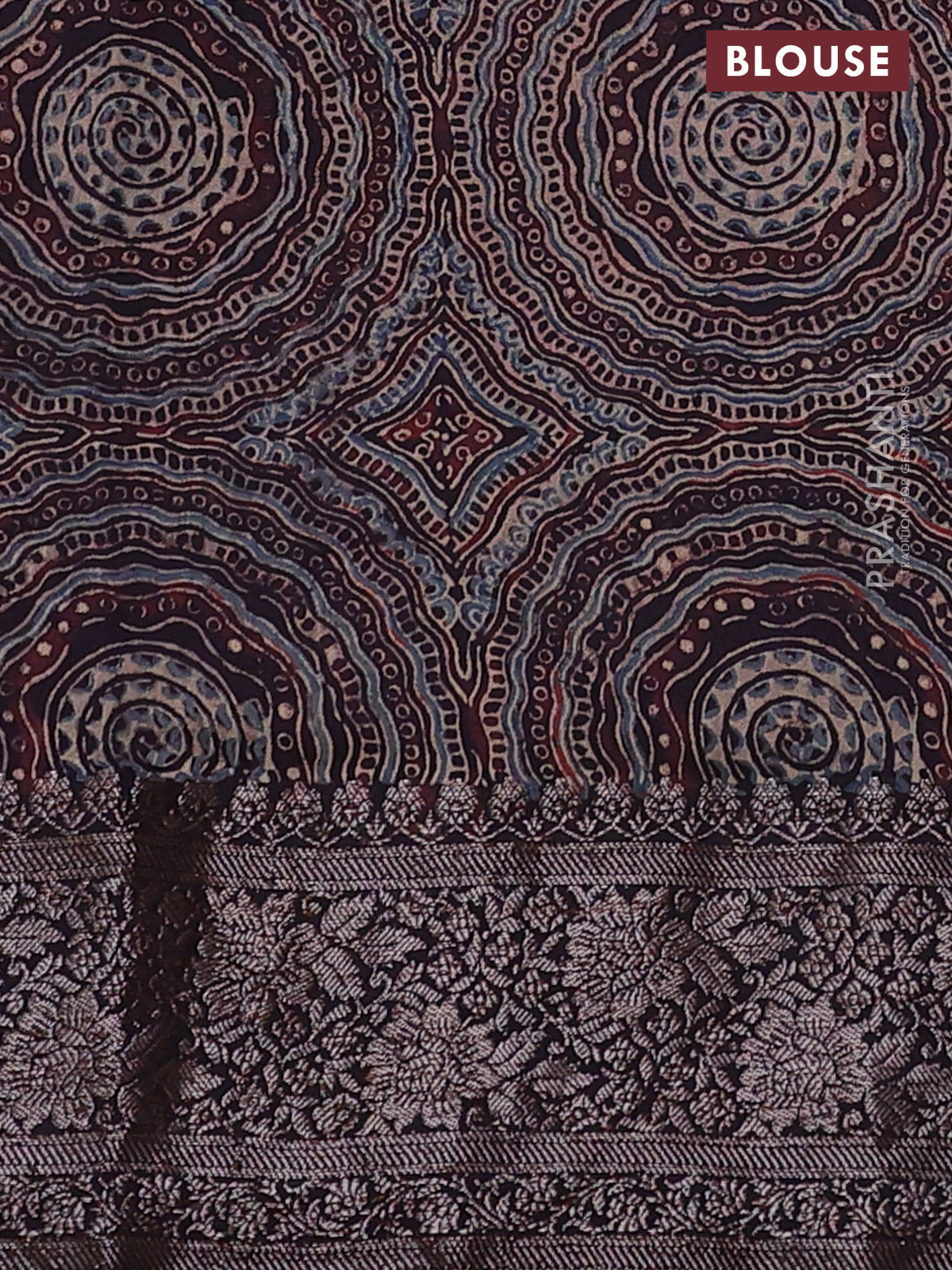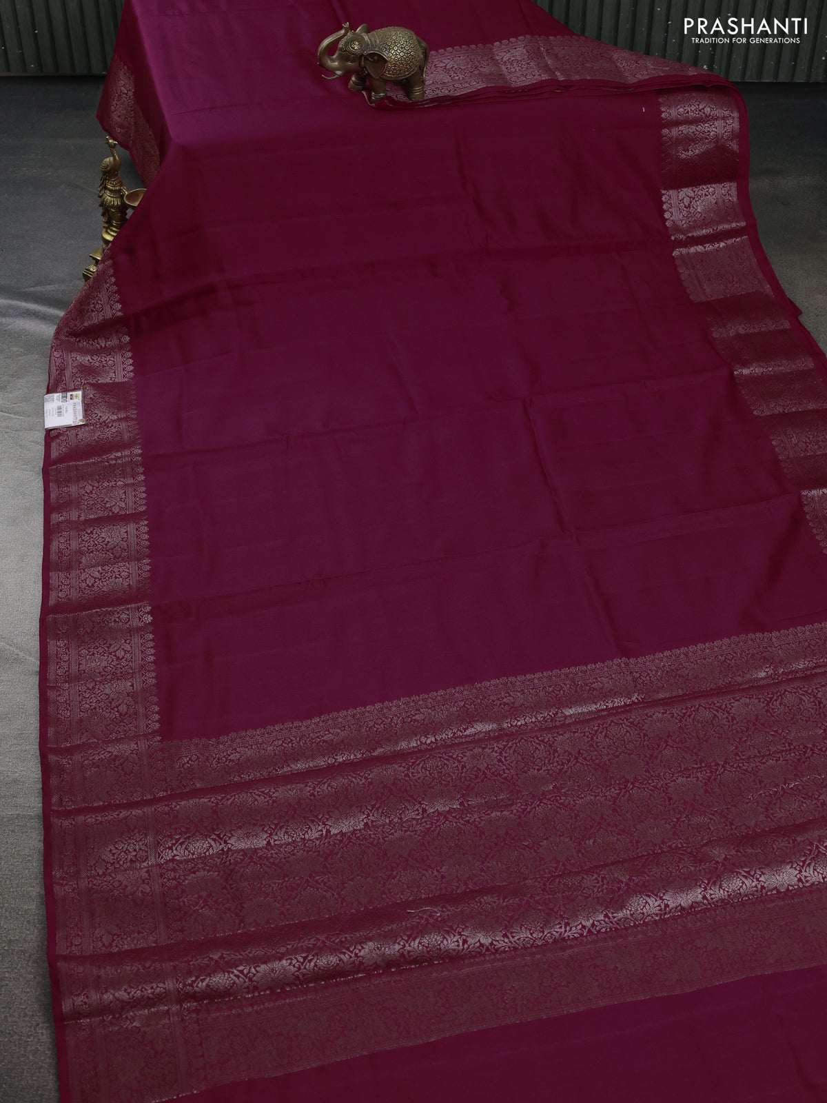 Chiniya silk saree maroon and deep jamun with plain body and woven border