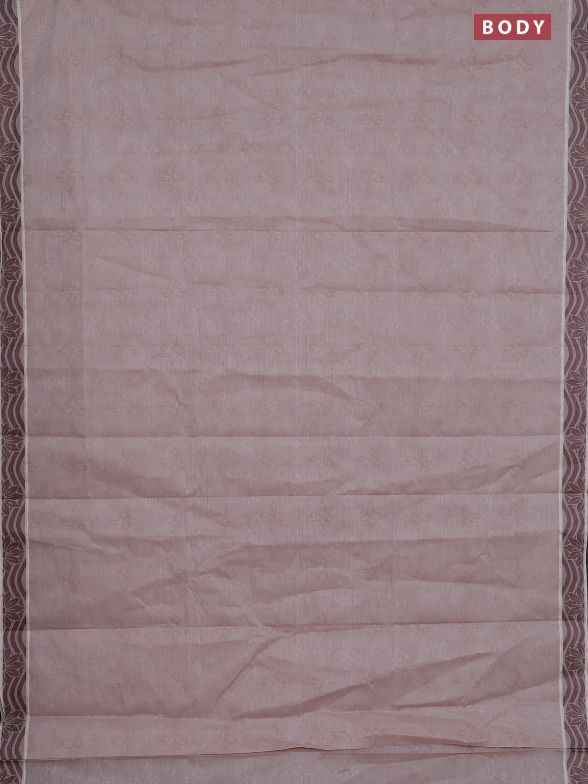 Coimbatore cotton saree beige and coffee brown with allover self emboss and thread woven border