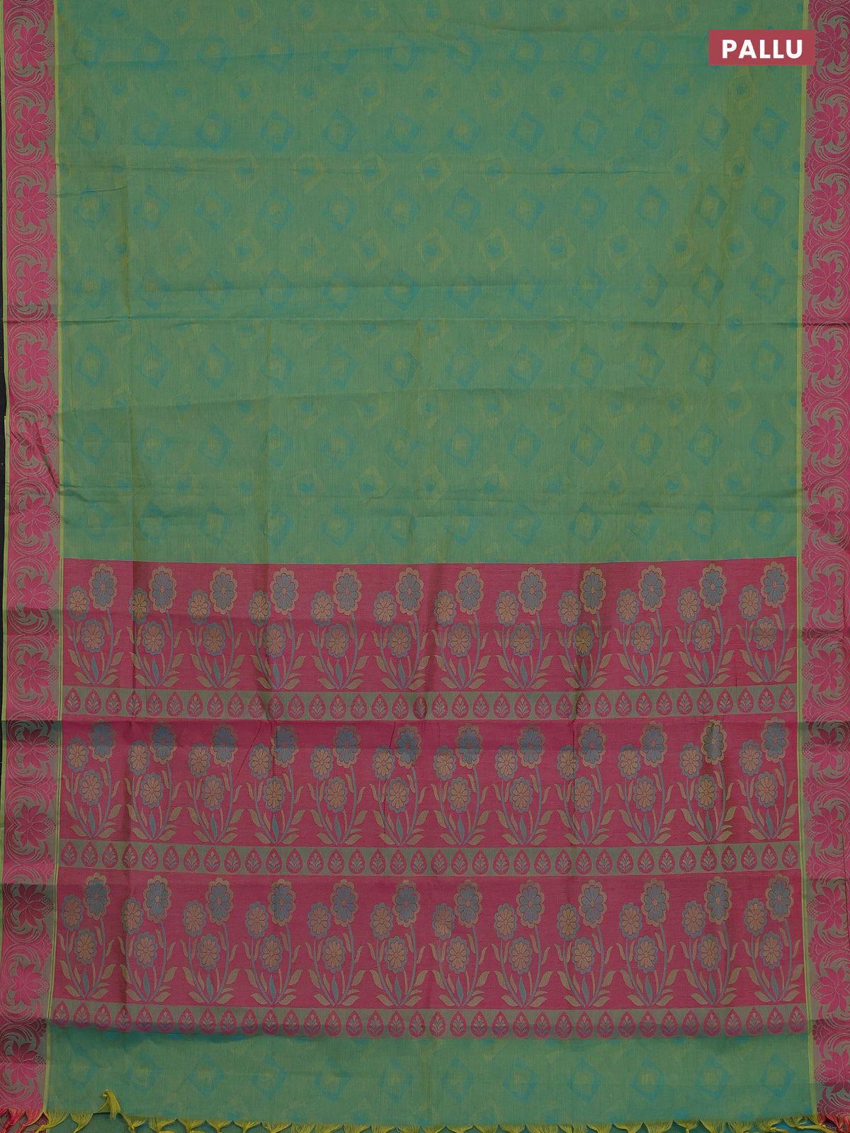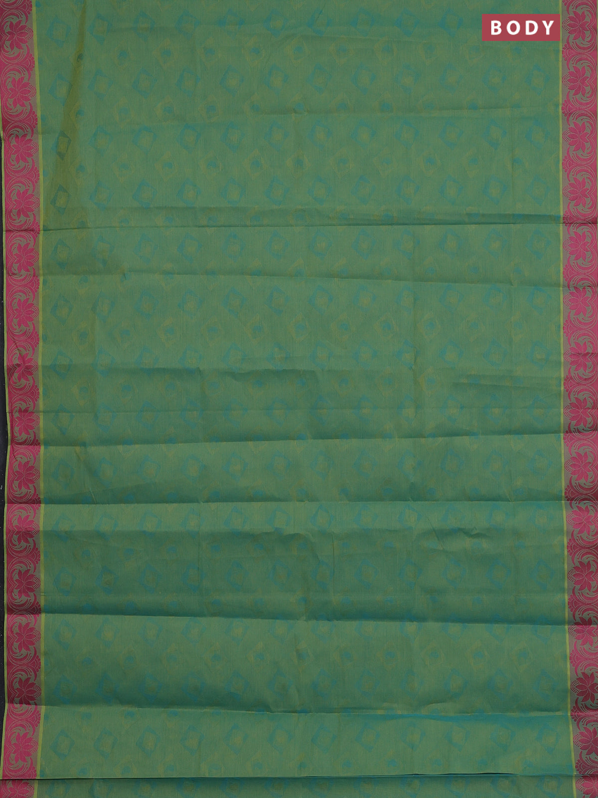 Coimbatore cotton saree dual shade of greenish blue and pink with allover self emboss and thread woven border