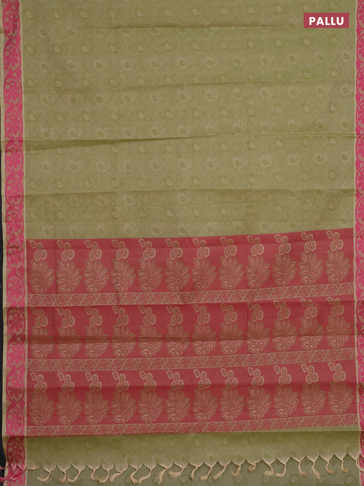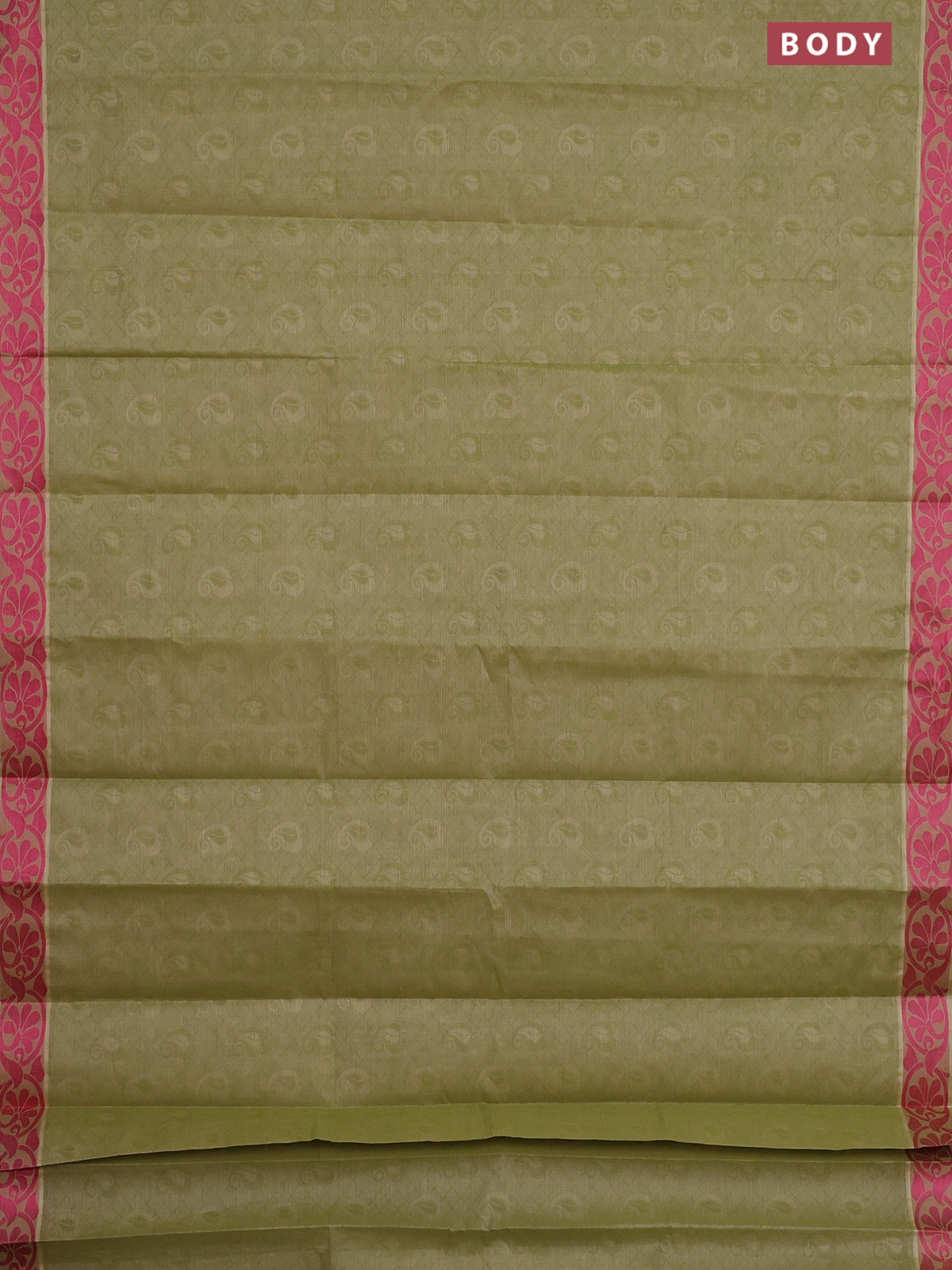 Coimbatore cotton saree light green and pink with allover self emboss and thread woven border