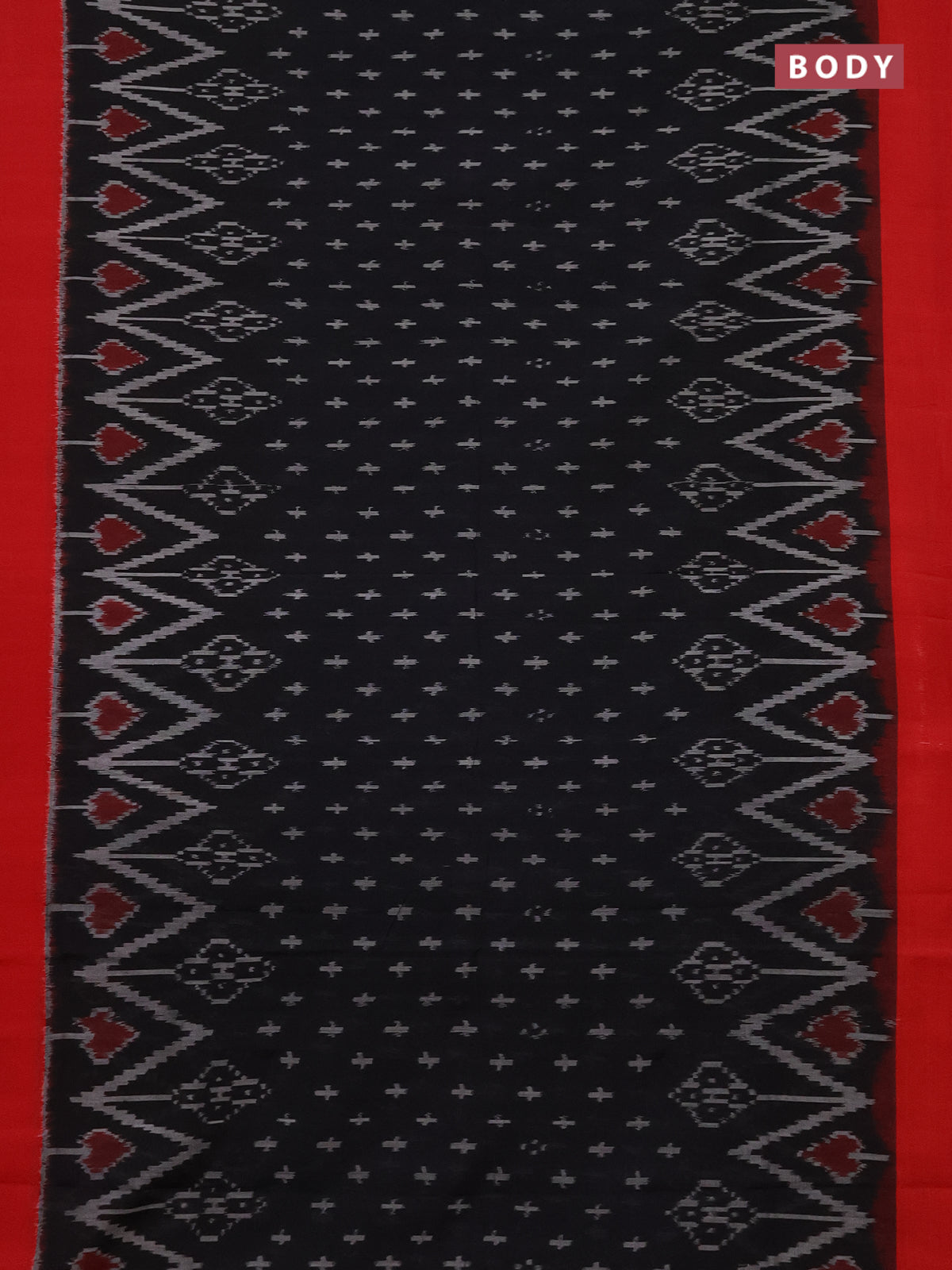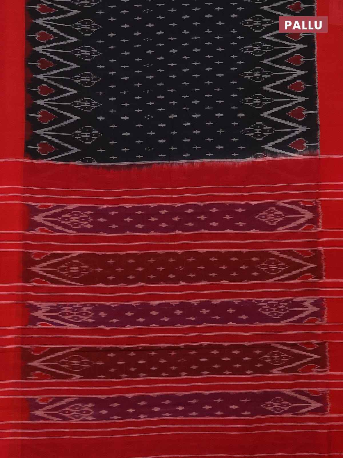 Ikat cotton saree black and red with allover ikat butta weaves and simple border