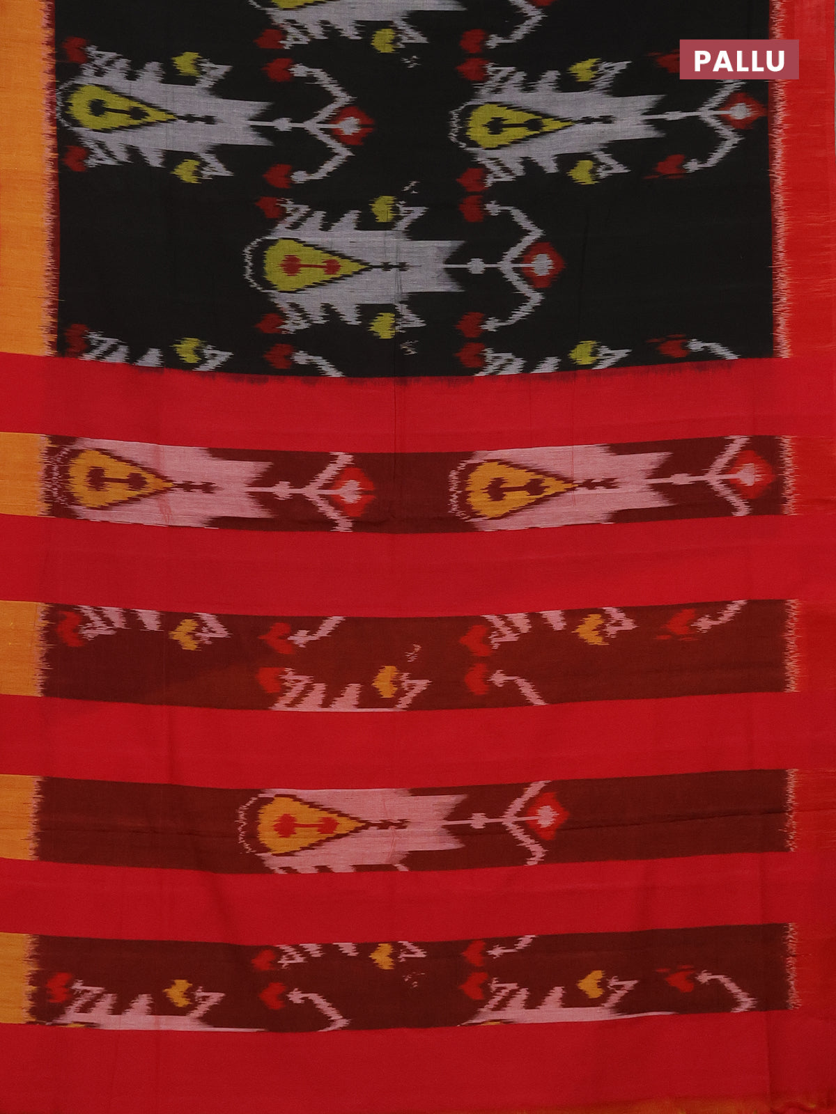 Ikat cotton saree black with allover ikat weaves and ganga jamuna border