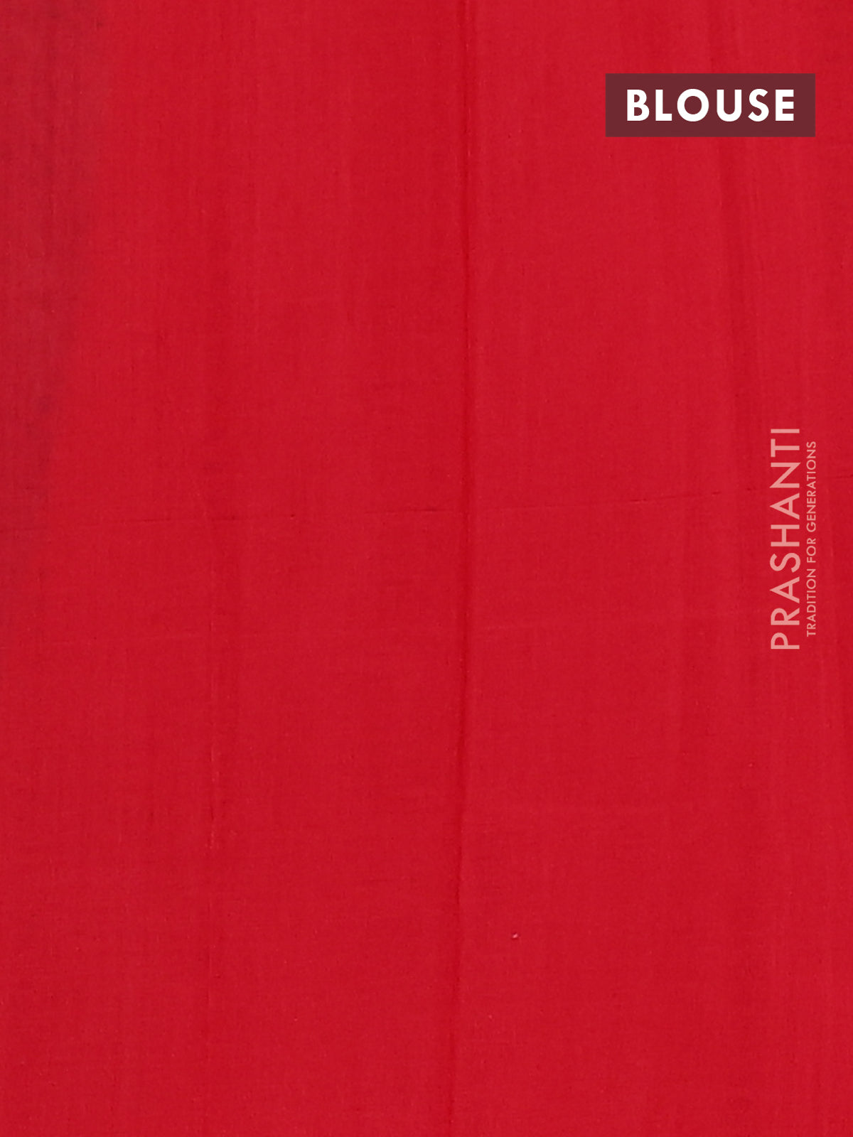 Ikat cotton saree blue and red with allover ikat butta weaves and temple design ikat style border