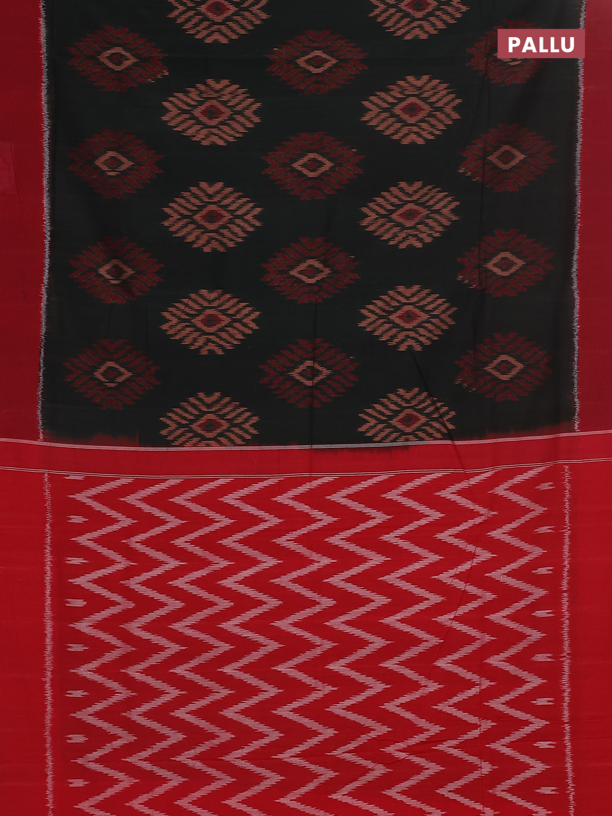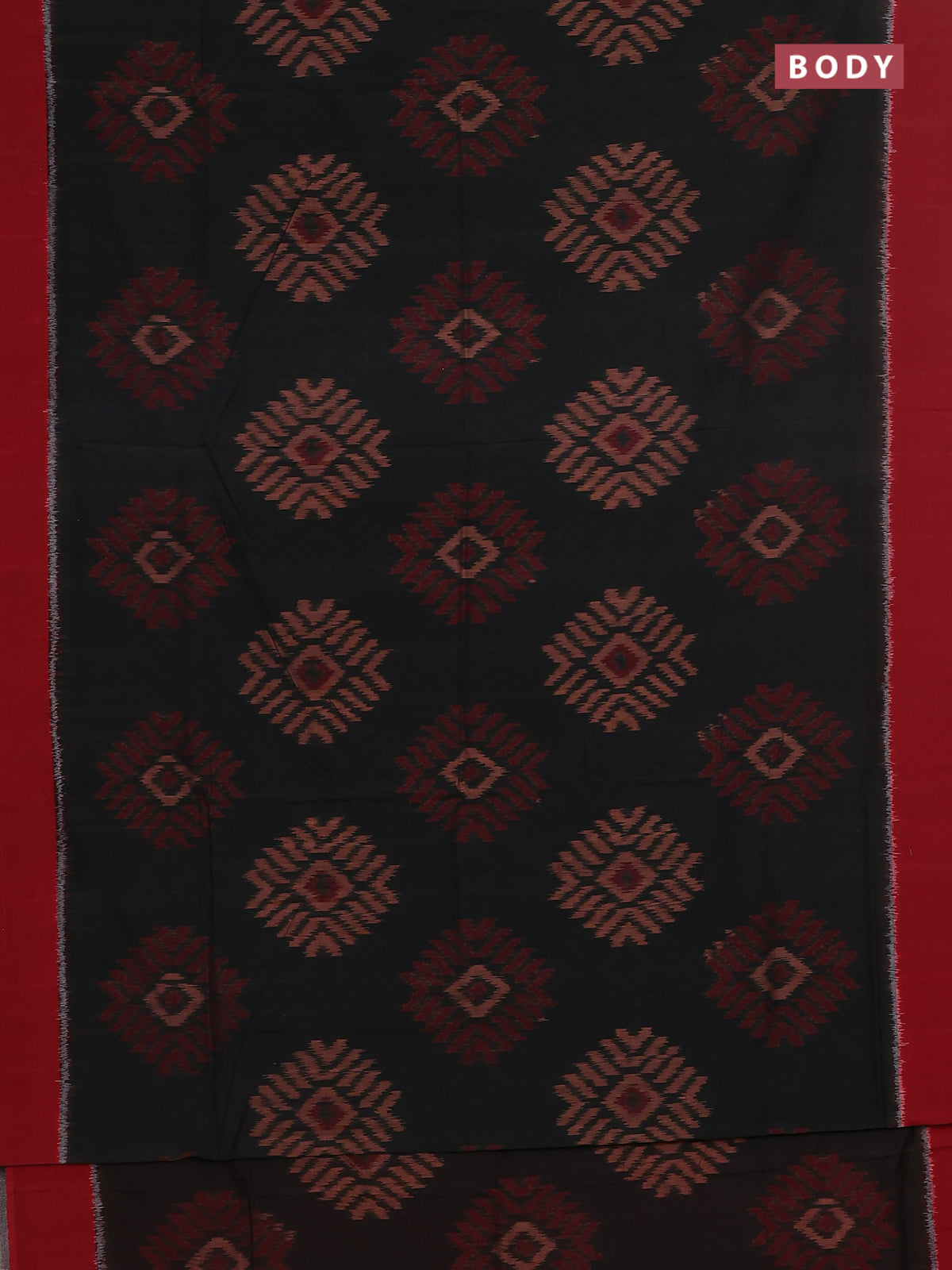 Ikat cotton saree coffee brown and maroon with allover ikat butta weaves and simple border