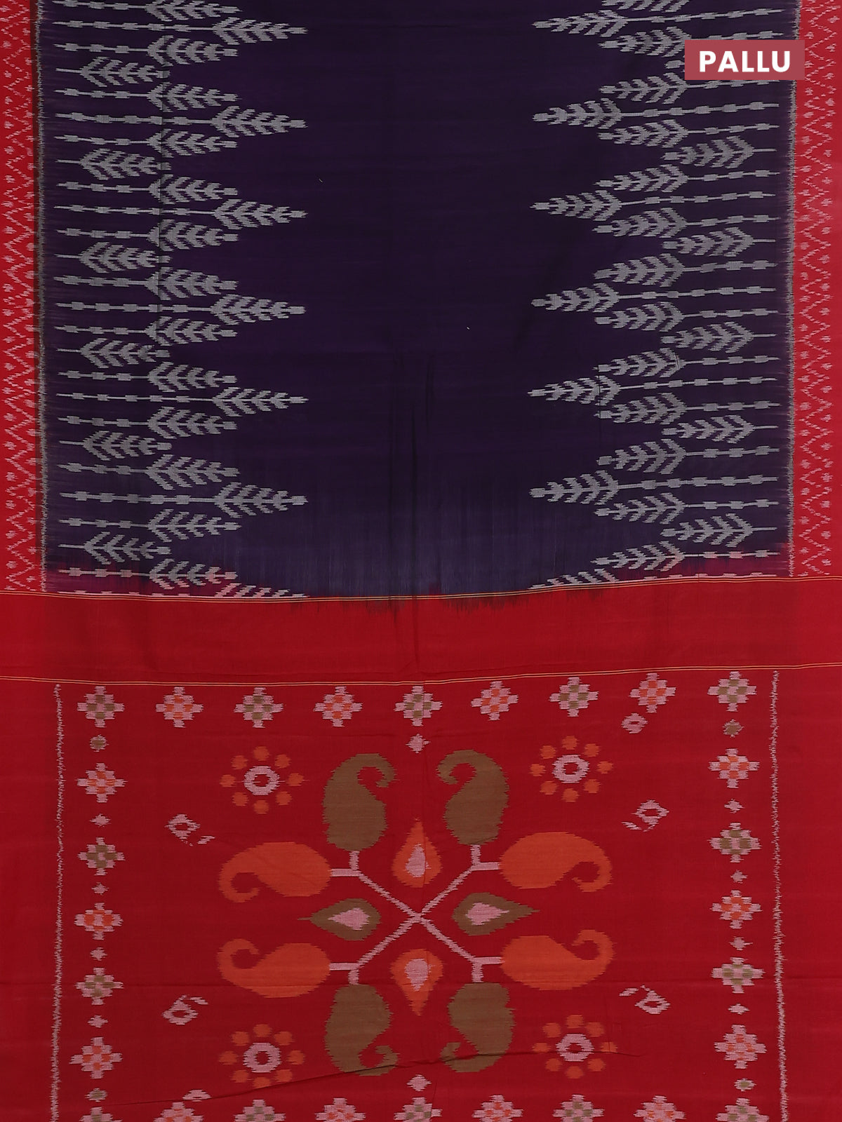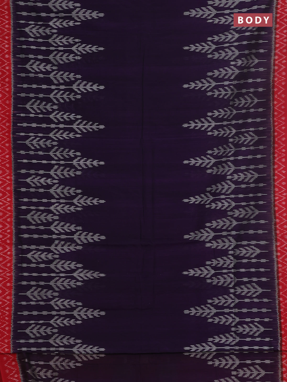 Ikat cotton saree deep violet and red with allover ikat weaves and simple border