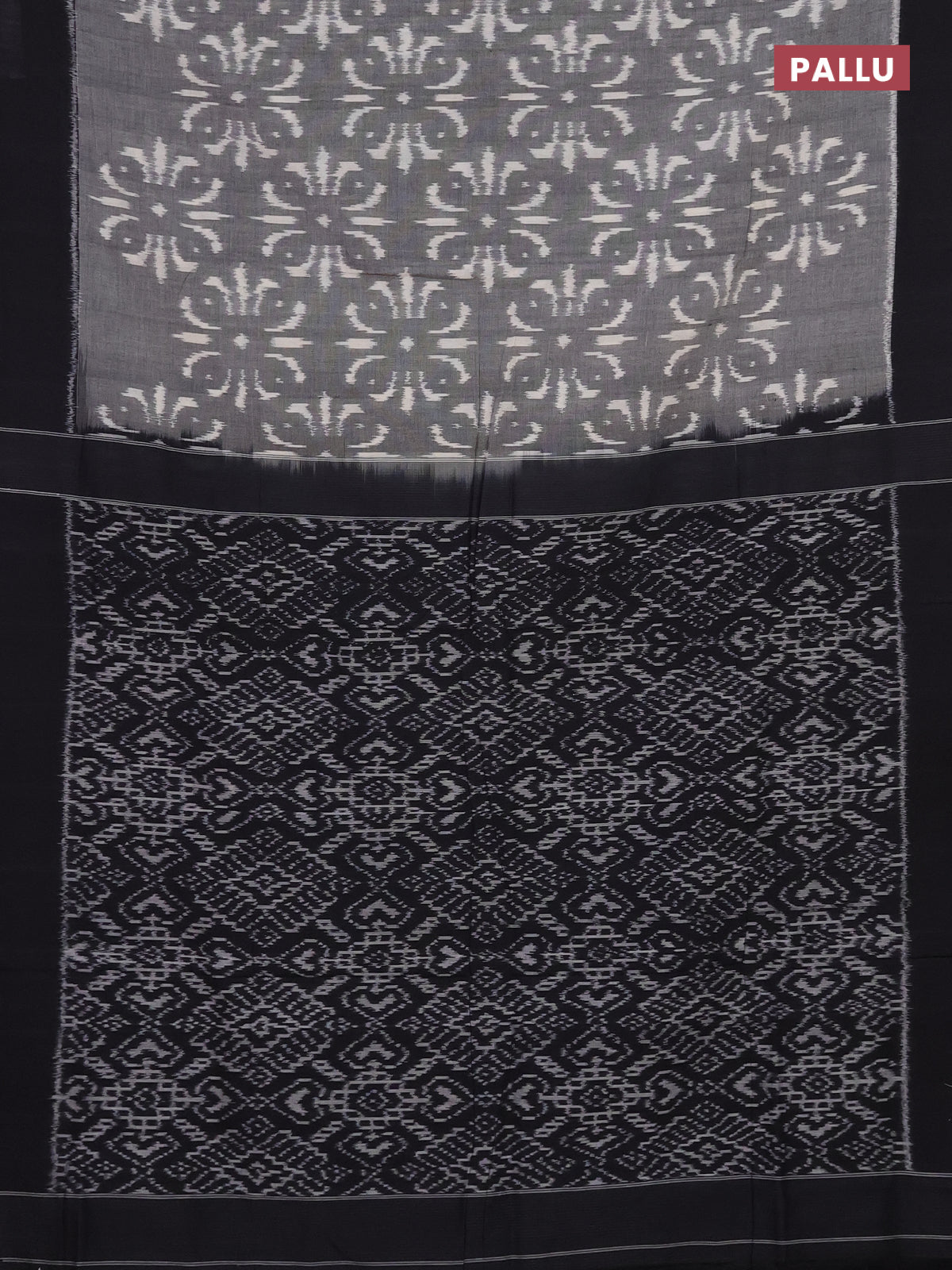 Ikat cotton saree grey and black with allover ikat weaves and simple border