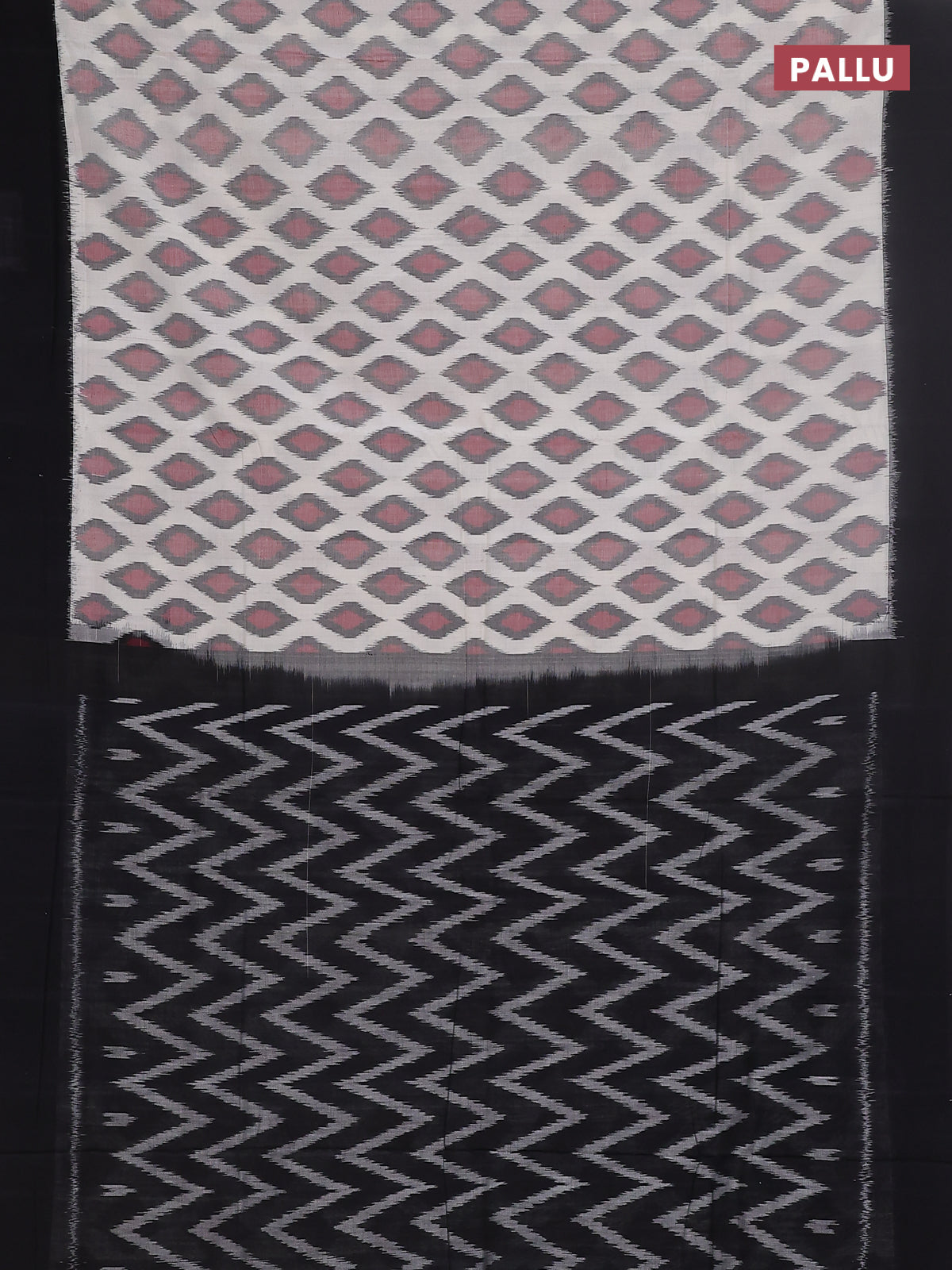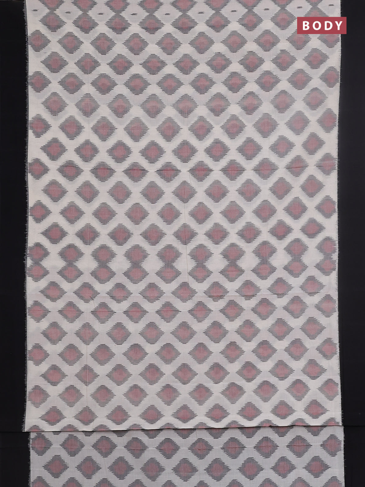 Ikat cotton saree off white and black with allover ikat butta weaves and simple border