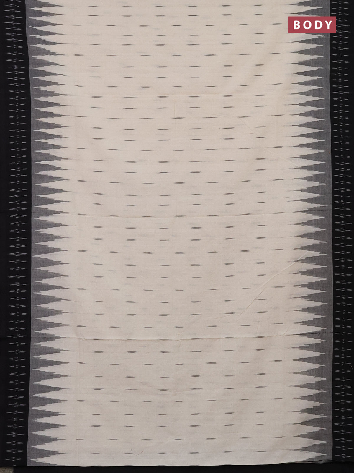 Ikat cotton saree off white and black with allover ikat butta weaves and temple design simple border