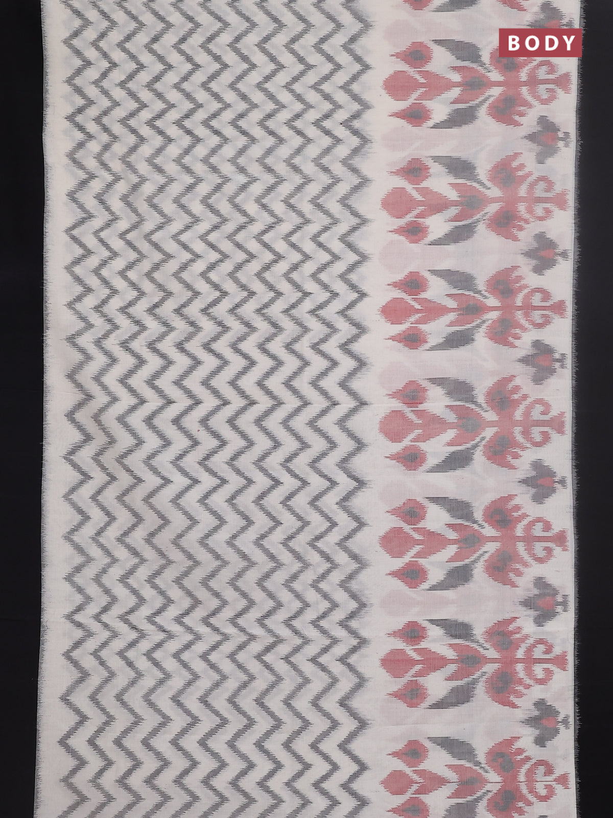 Ikat cotton saree off white and black with allover zig zag ikat weaves and long ikat style border