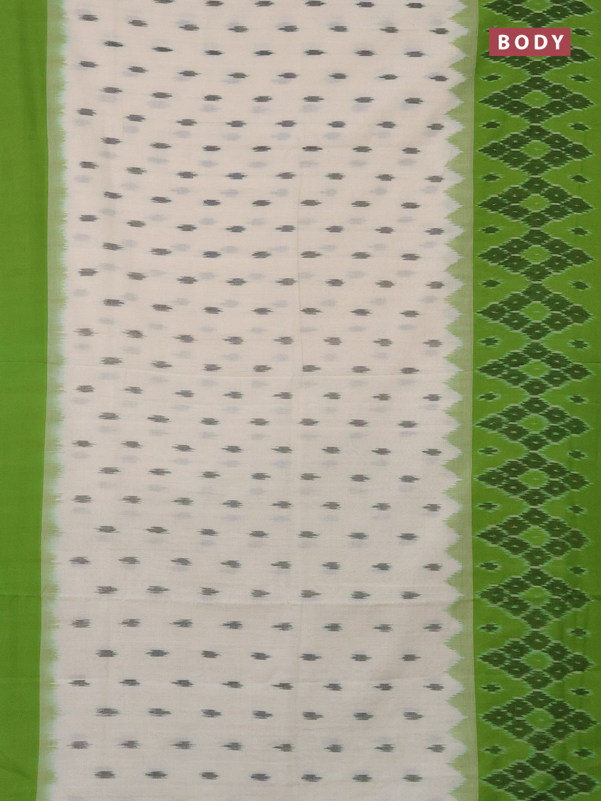 Ikat cotton saree off white and light green with allover ikat butta weaves and long ikat style border