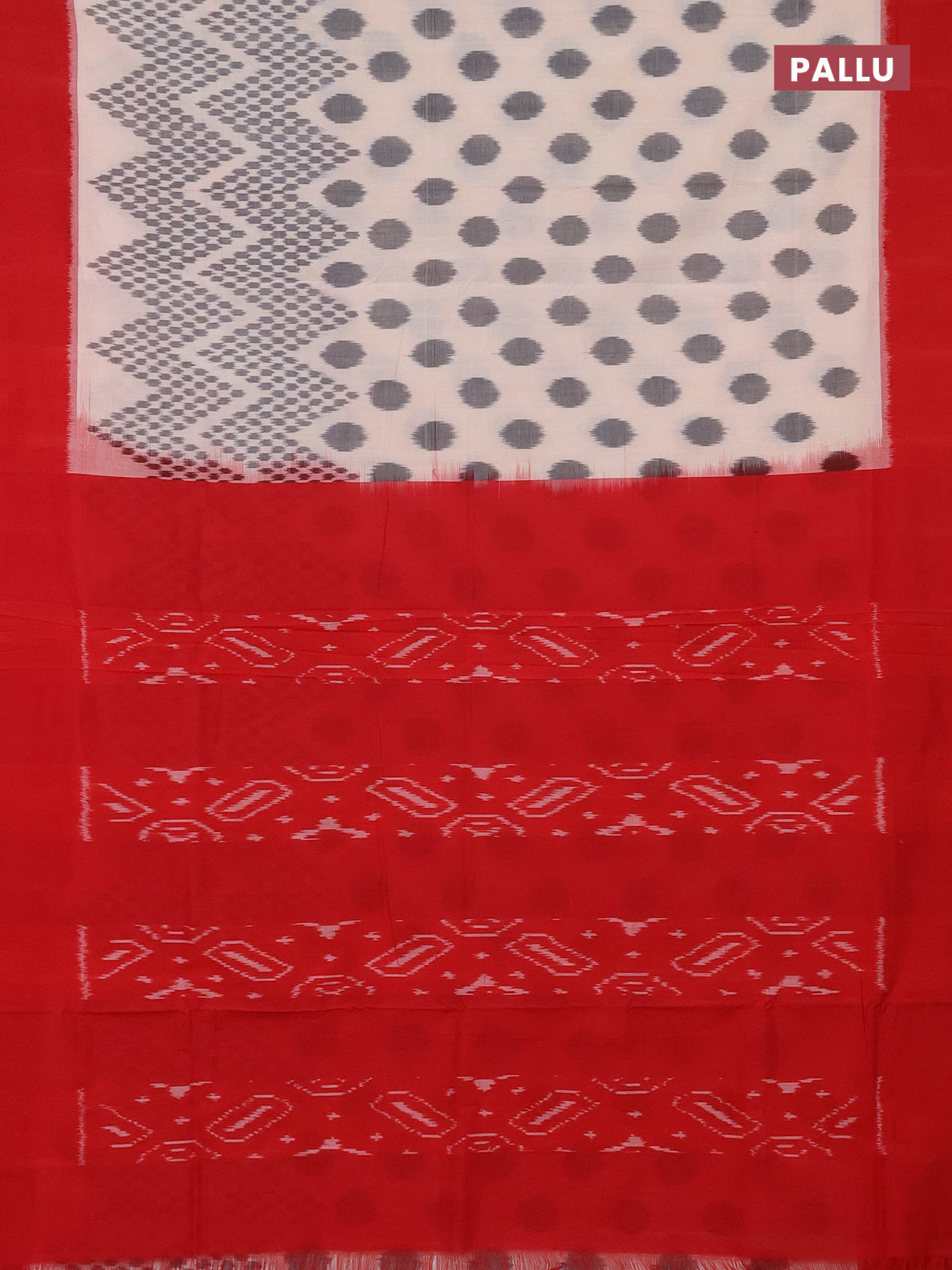 Ikat cotton saree off white and red with allover ikat butta weaves and simple border