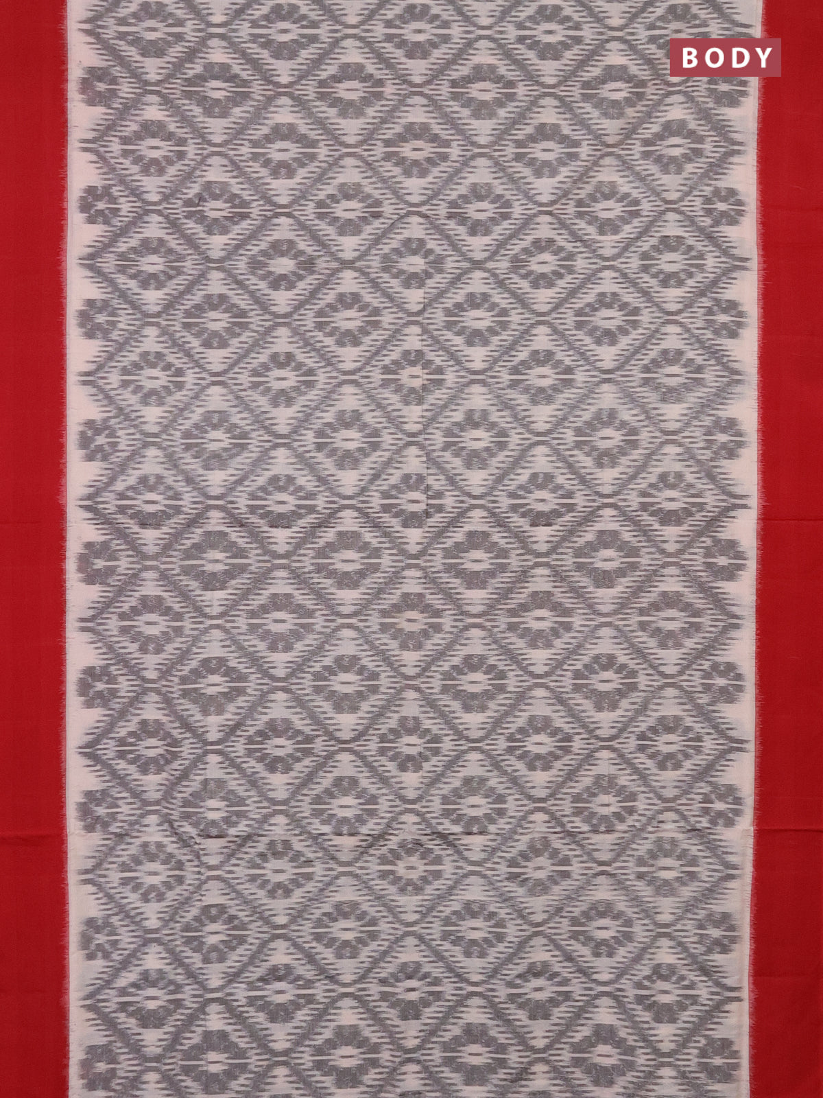 Ikat cotton saree off white grey and red with allover ikat weaves and simple border