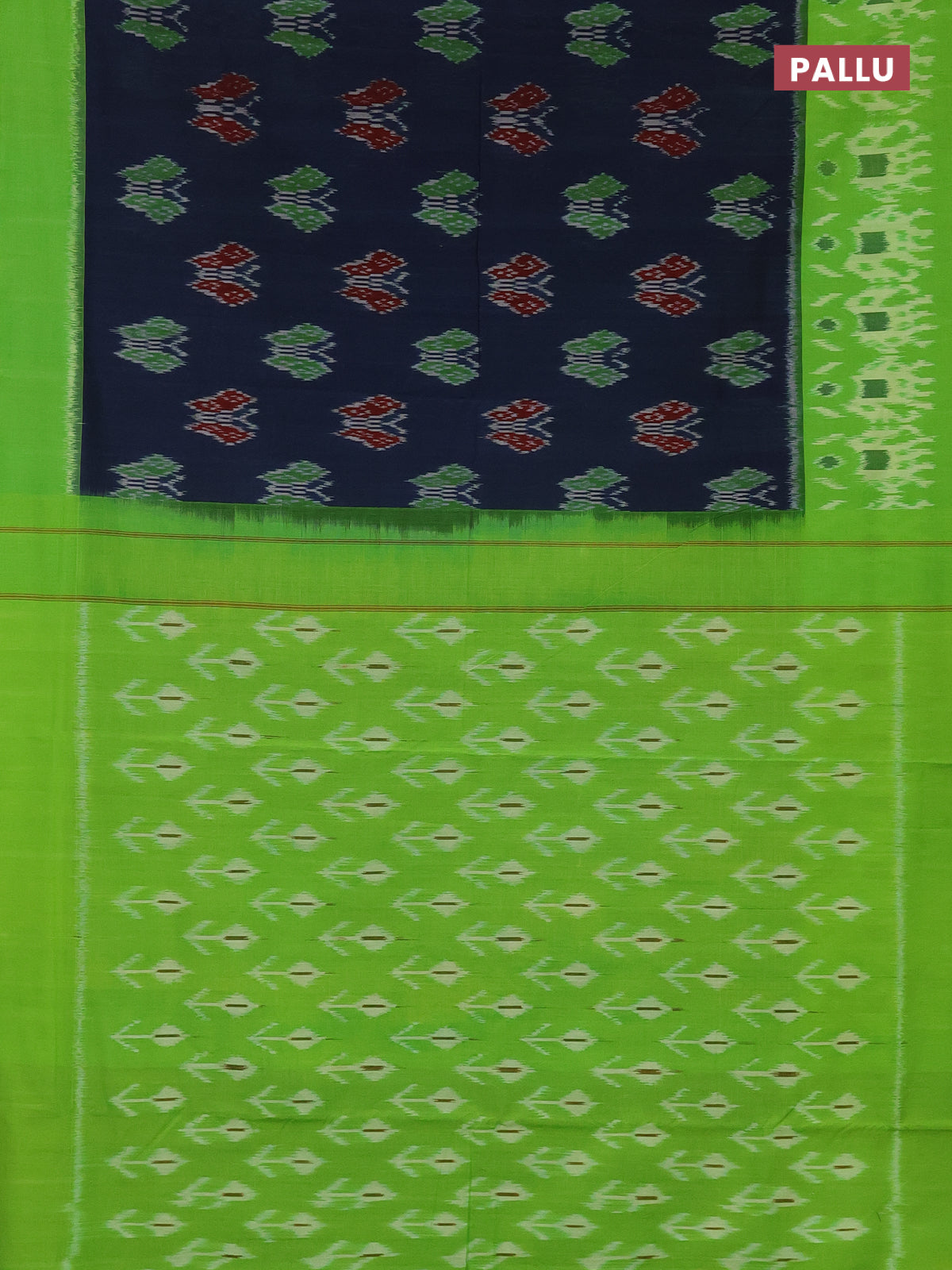 Ikat cotton saree peacock blue and light green with allover ikat butta weaves and simple border