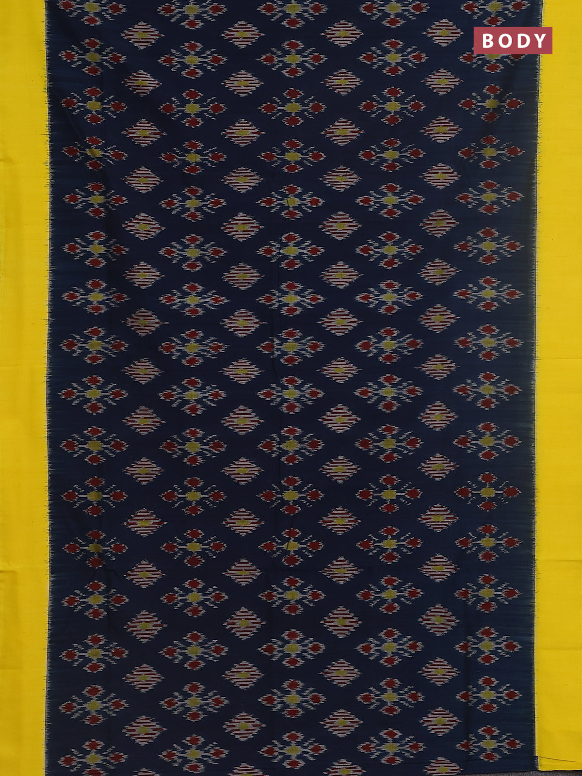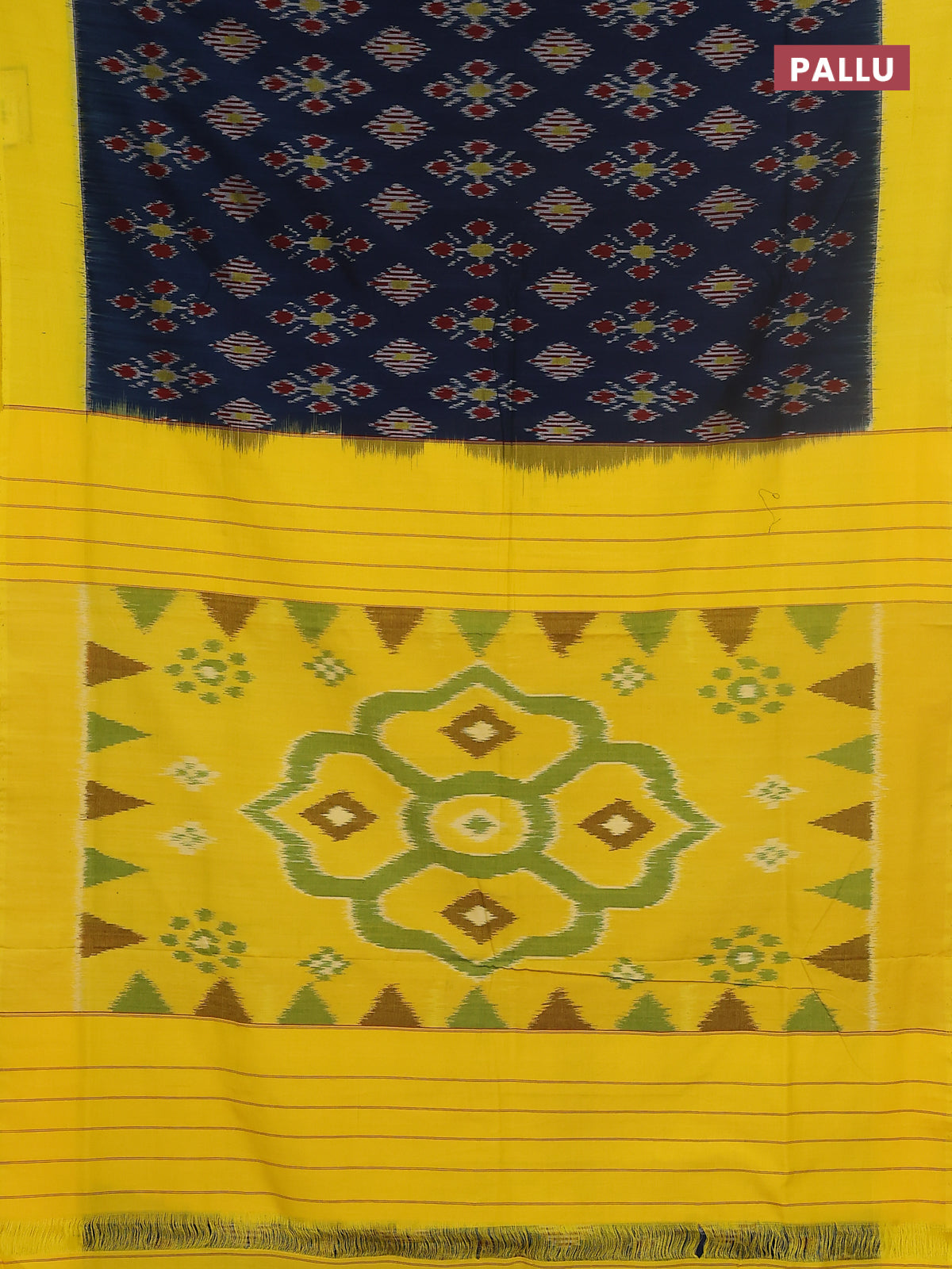 Ikat cotton saree peacock blue and yellow with allover ikat butta weaves and simple border