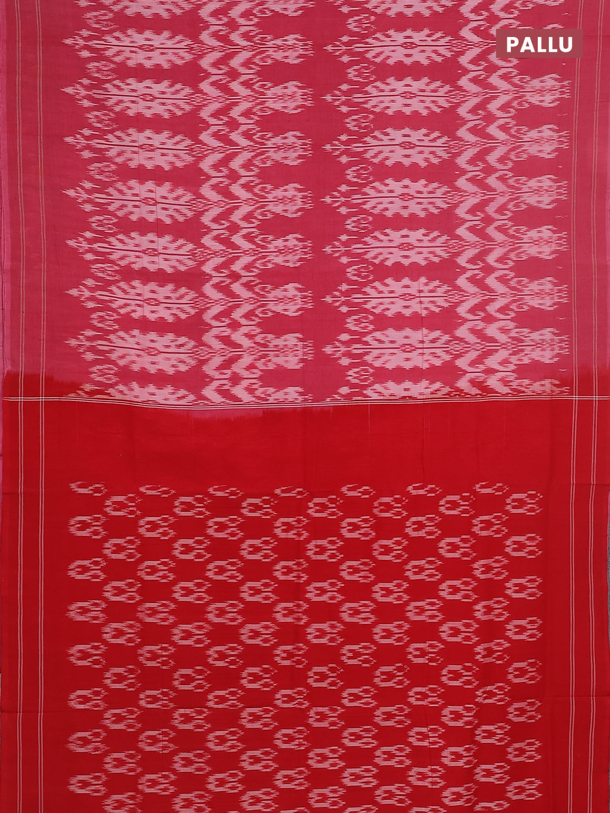 Ikat cotton saree pink shade and red with allover ikat weaves and simple border