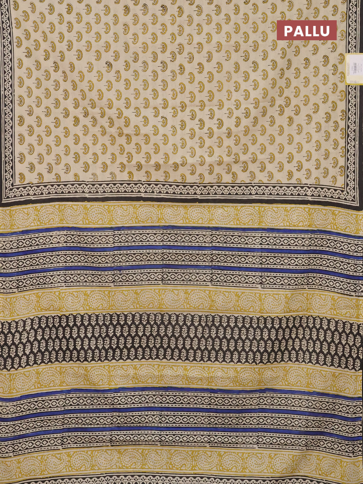 Jaipur cotton saree beige and black with allover butta prints and printed border
