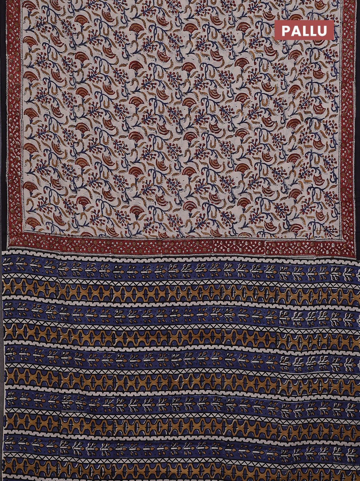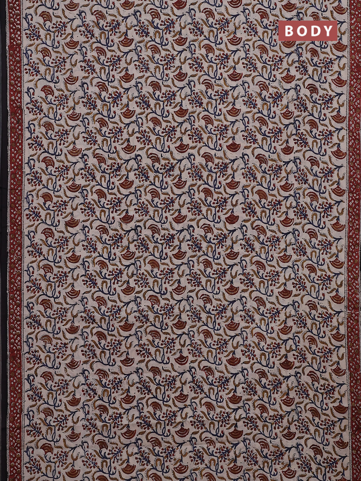 Jaipur cotton saree beige and maroon with allover kalamkari prints and printed border