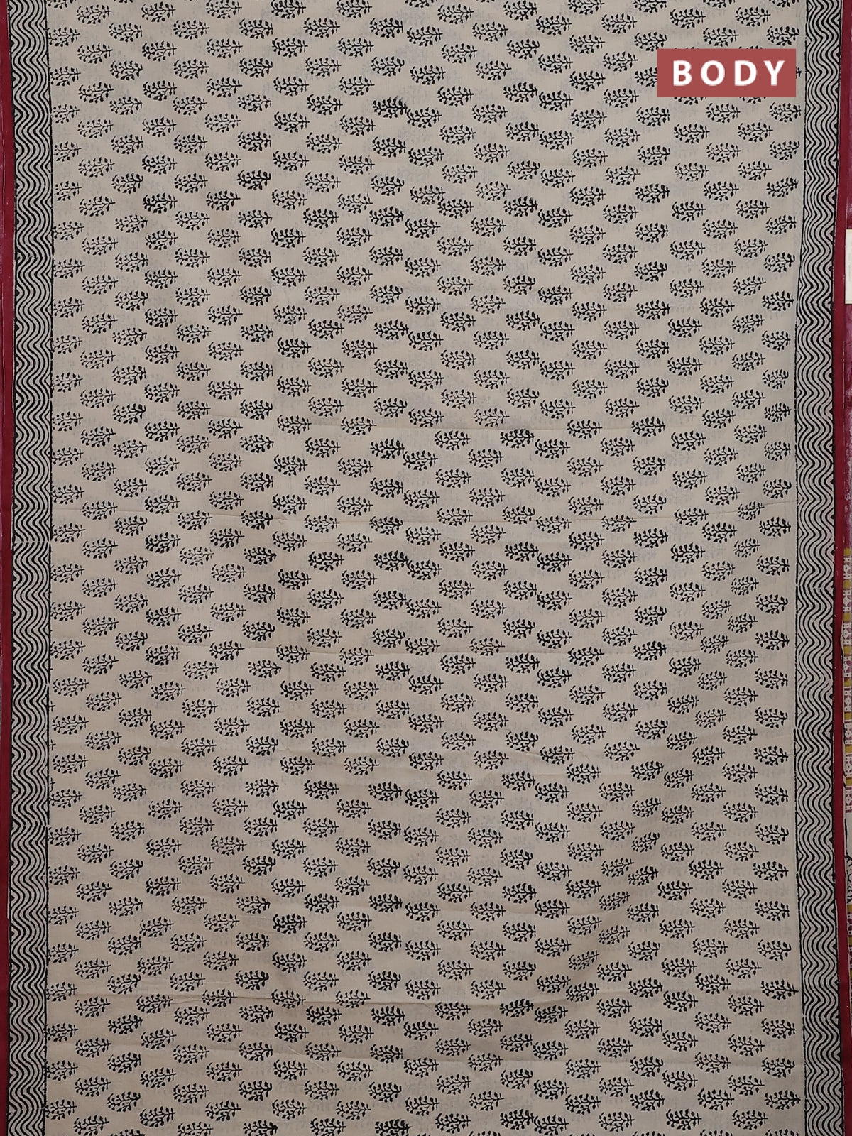 Jaipur cotton saree beige black and marron with allover paisley prints and printed border