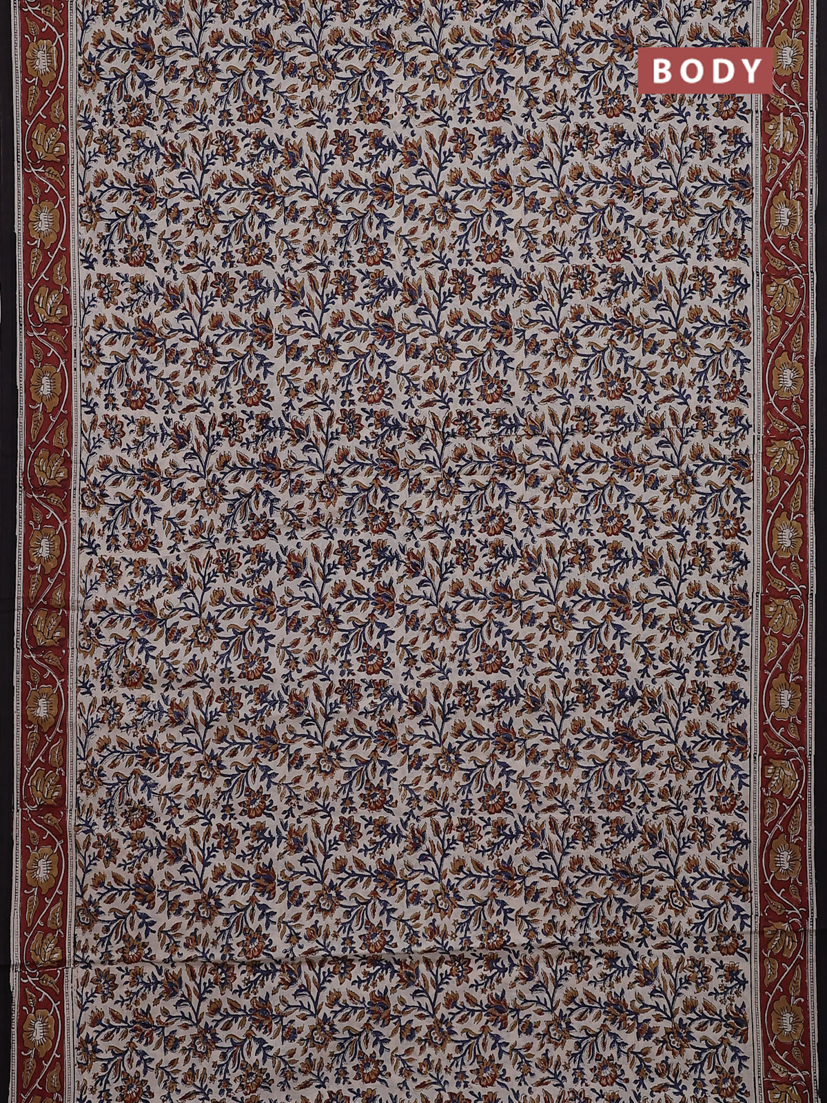 Jaipur cotton saree beige blue and maroon with allover kalamkari prints and printed border
