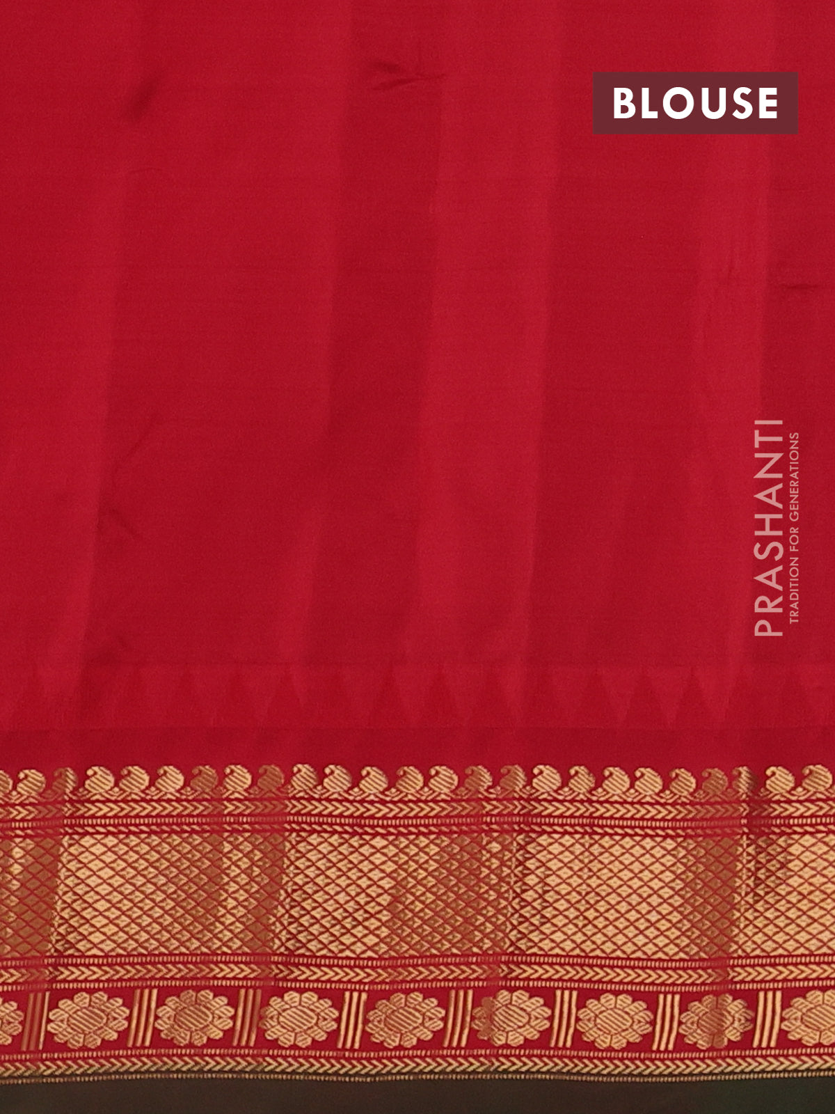 Pure gadwal silk saree light blue and red with floral zari woven buttas and temple design zari woven border