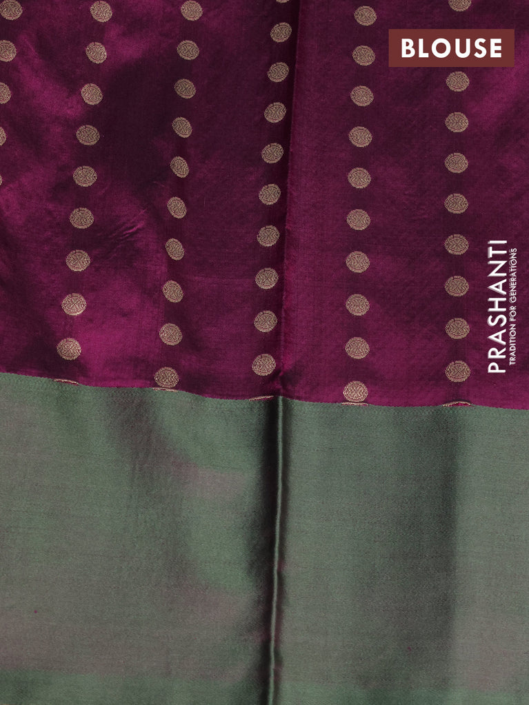 Banarasi katan silk saree dark magenta pink and dual shade of green with zari woven floral buttas and zari woven butta border