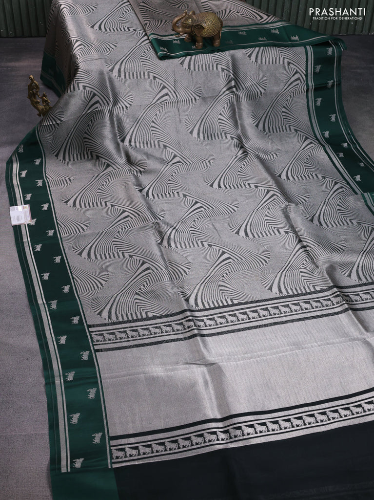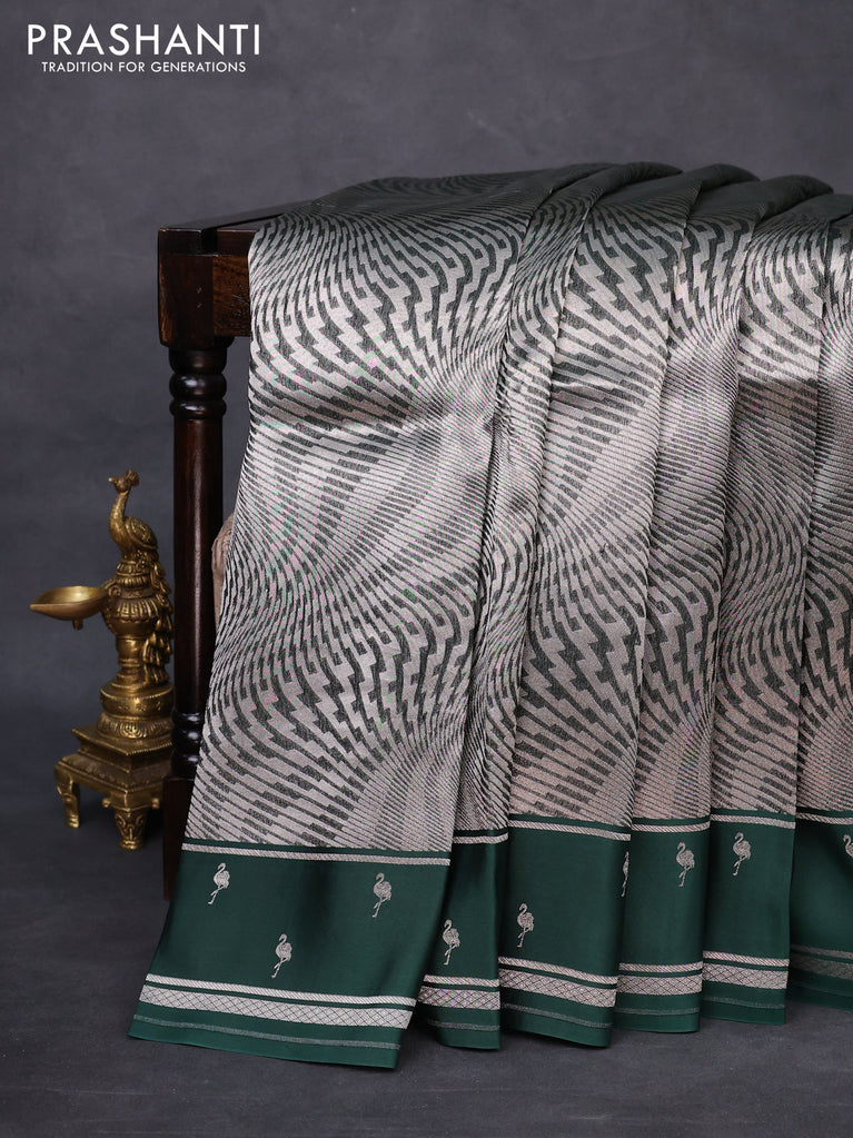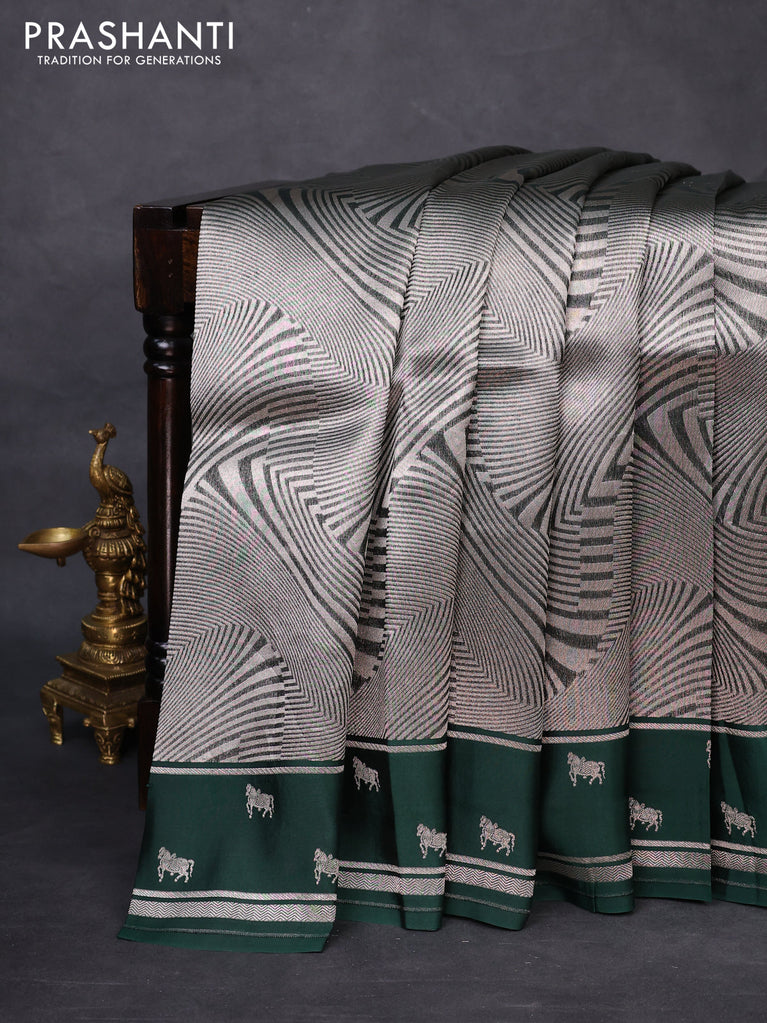 Banarasi katan silk saree bottle green with allover zari woven brocade weaves and zari woven butta border