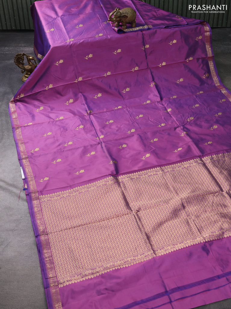 Banarasi katan silk saree dual shade of purple with zari woven floral buttas and zari woven border