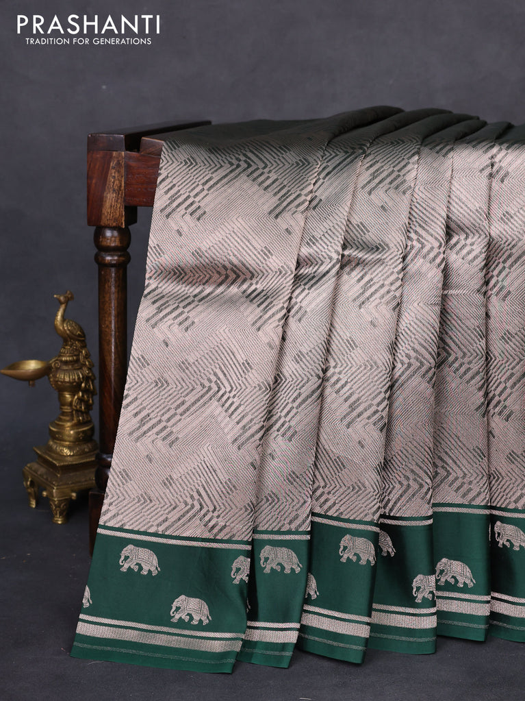 Banarasi katan silk saree green with allover silver zari woven brocade weaves and zari woven butta border