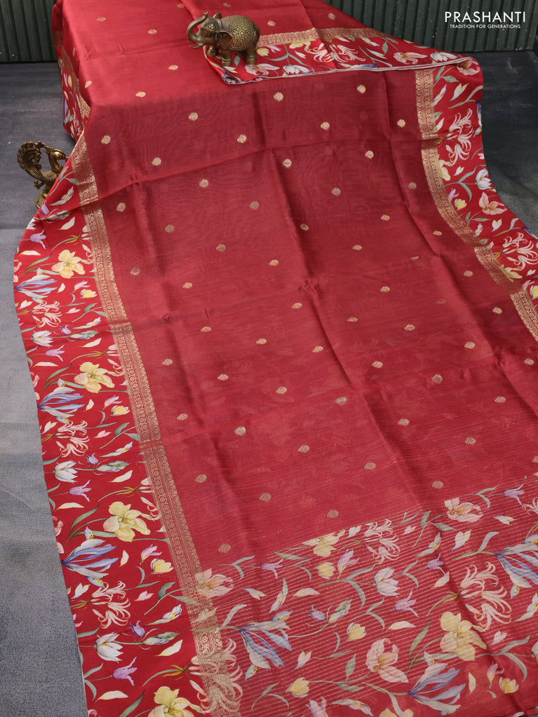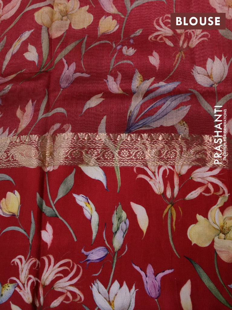 Banarasi tussar silk saree maroon and red with zari woven buttas and zari woven floral digital printed border