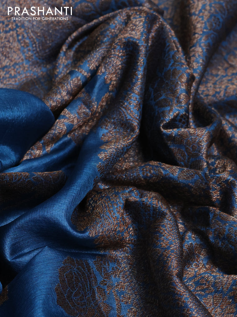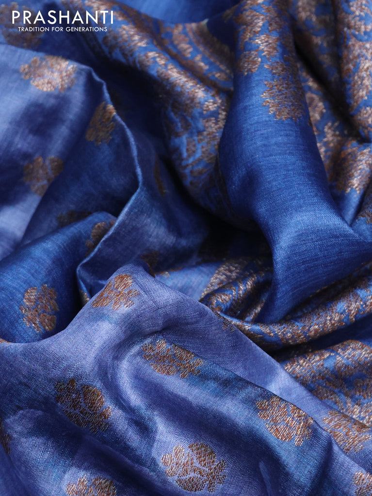 Banarasi tussar silk saree blue with thread & zari woven buttas and banarasi style border