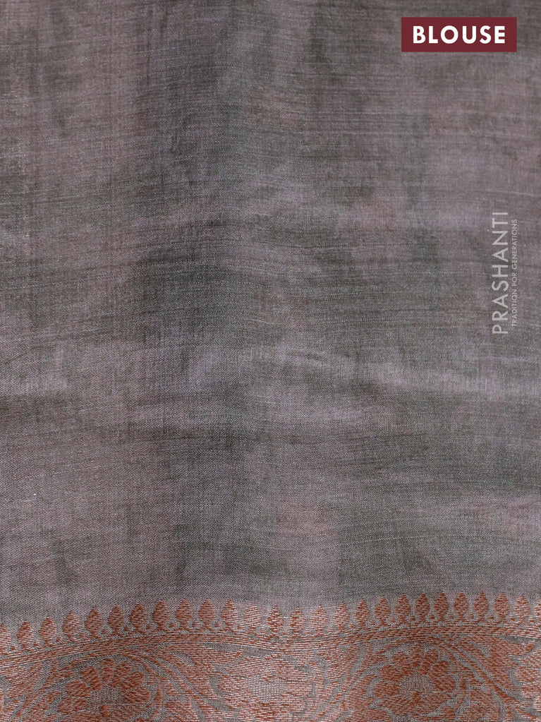 Banarasi tussar silk saree grey shade with woven buttas & floral digital prints and woven border