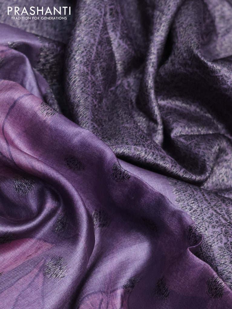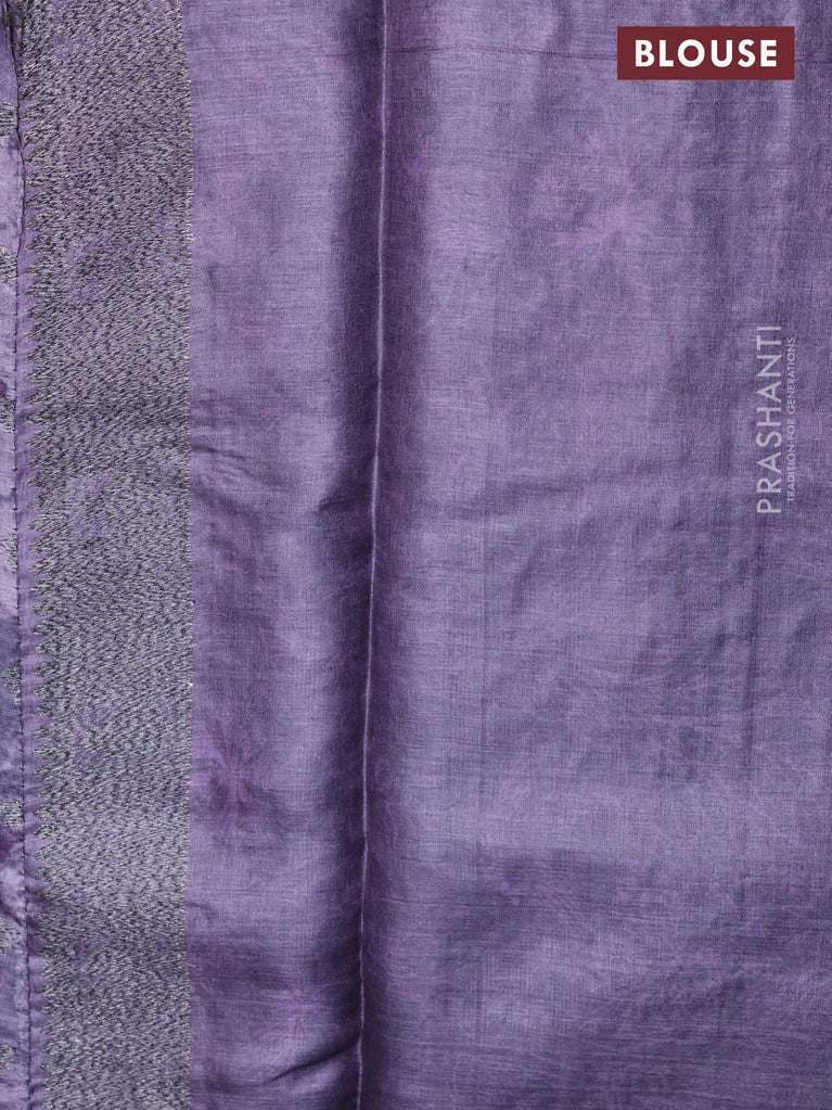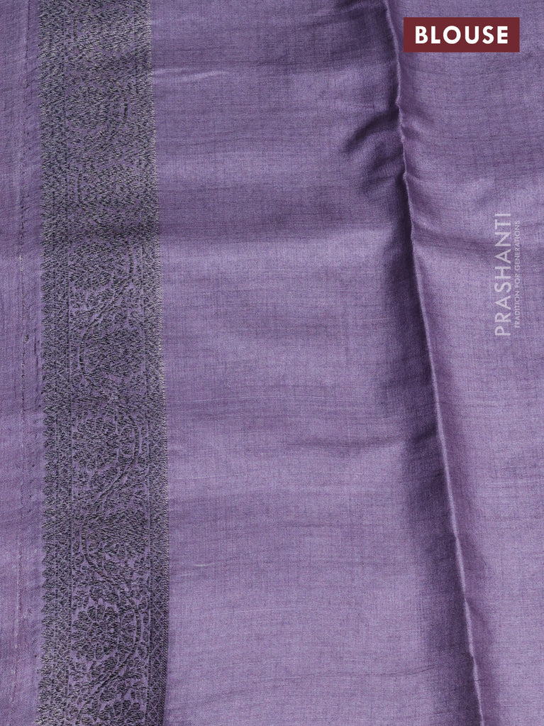 Banarasi tussar silk saree pastel lavender with woven buttas & digital prints in borderless style