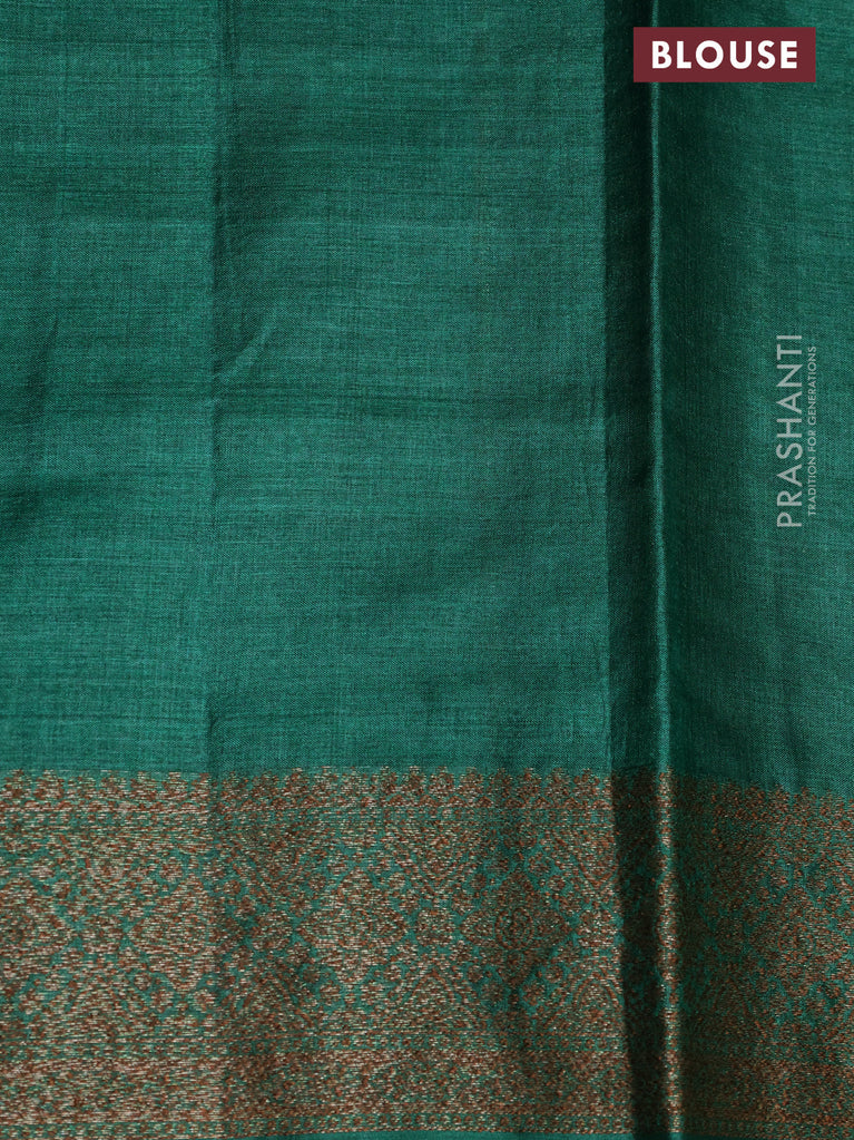 Banarasi tussar silk saree green with thread & zari woven buttas and banarasi style border