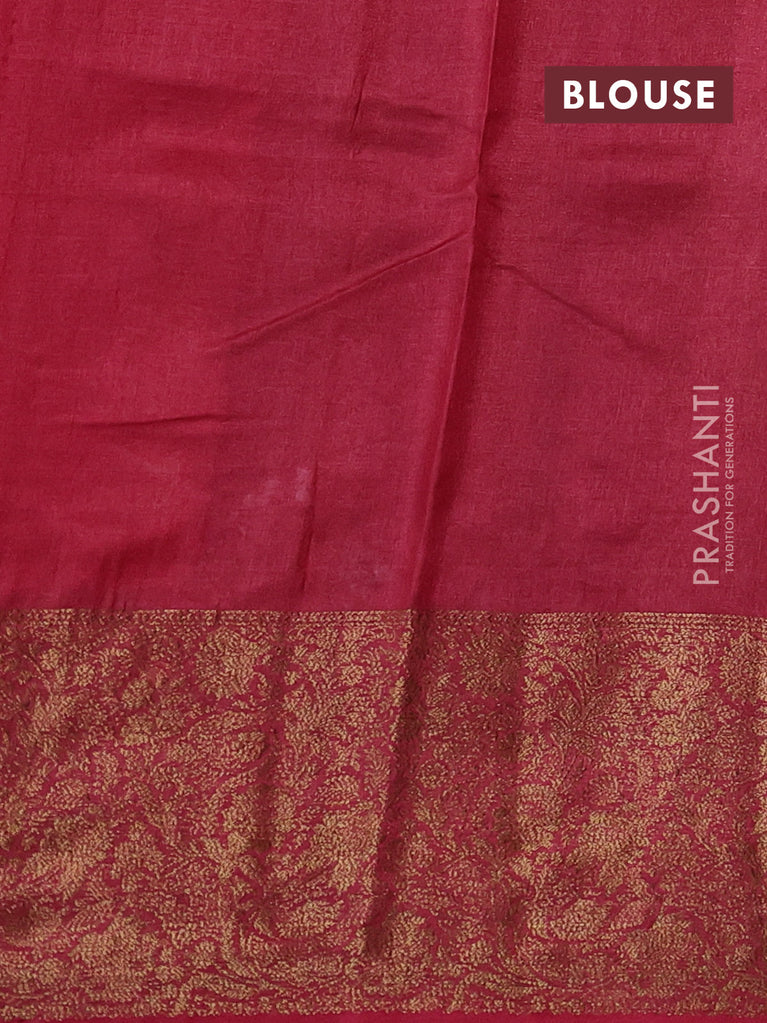 Banarasi tussar silk saree magenta pink and green with thread & zari woven buttas and woven border