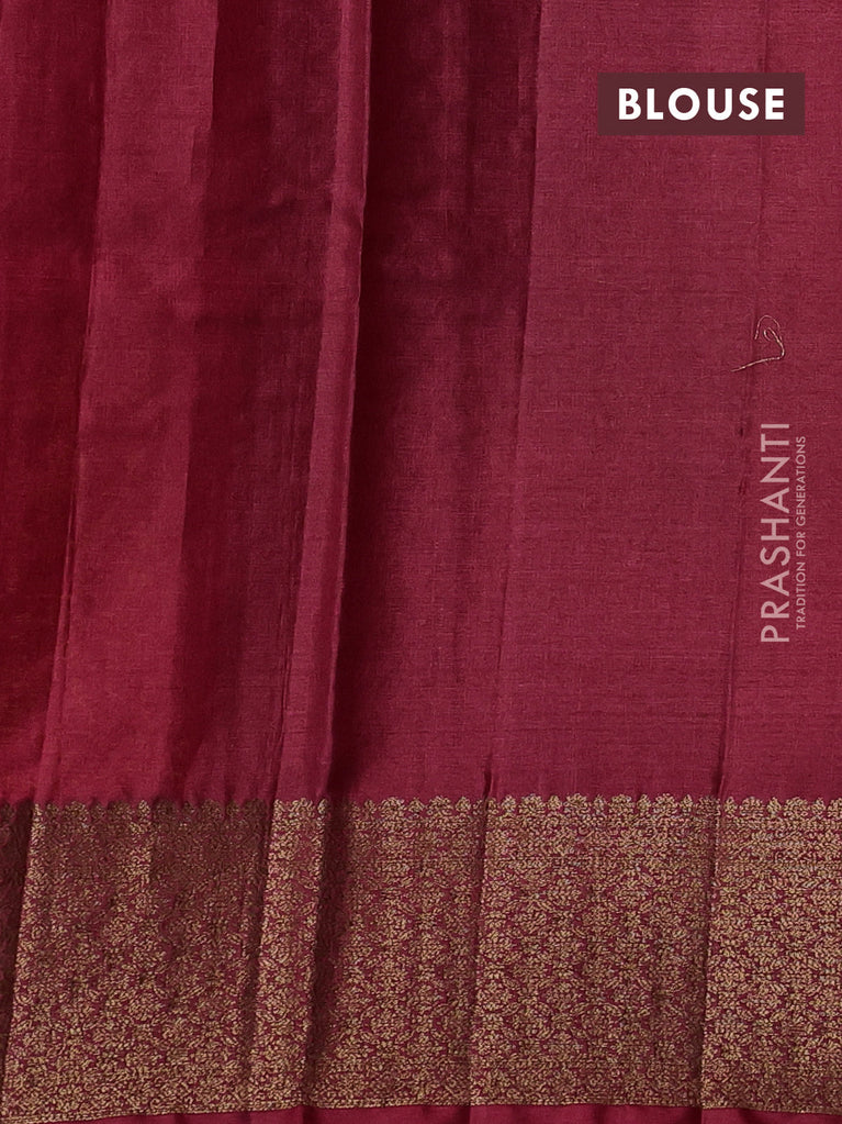 Banarasi tussar silk saree light green and wine shade with thread & zari woven buttas and woven border