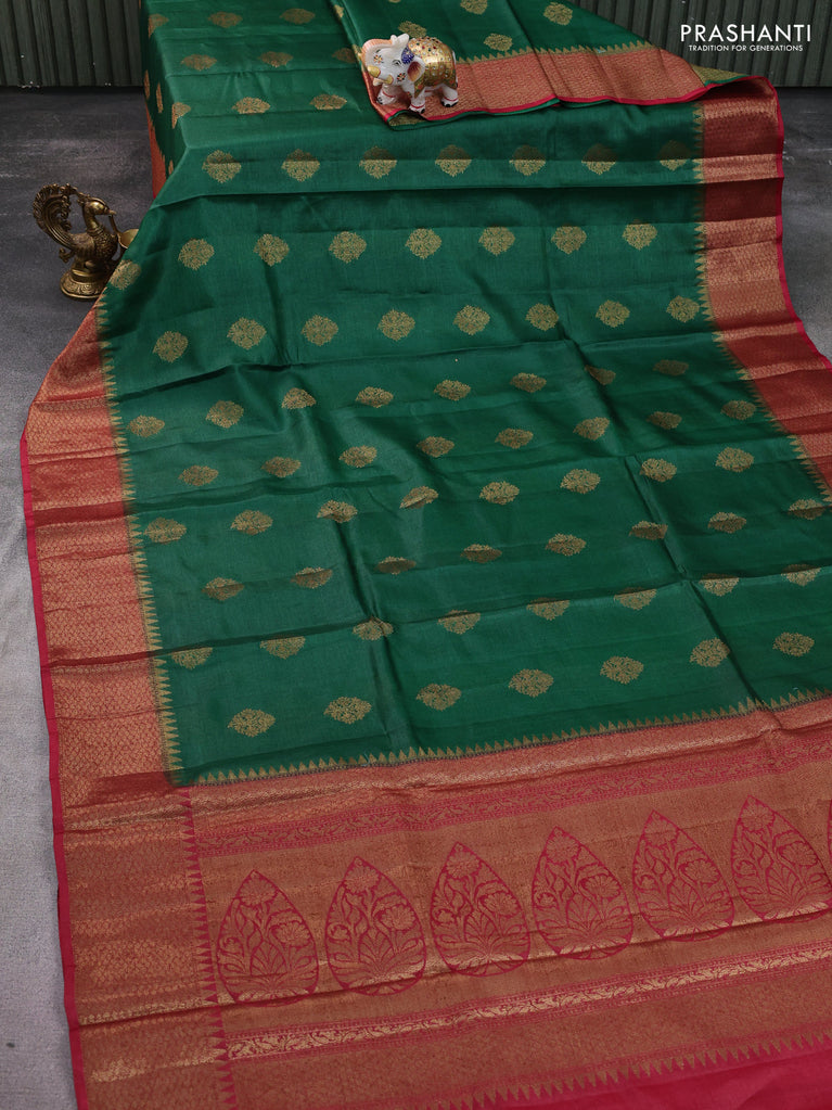 Banarasi tussar silk saree green and maroon with thread & zari woven buttas and woven border