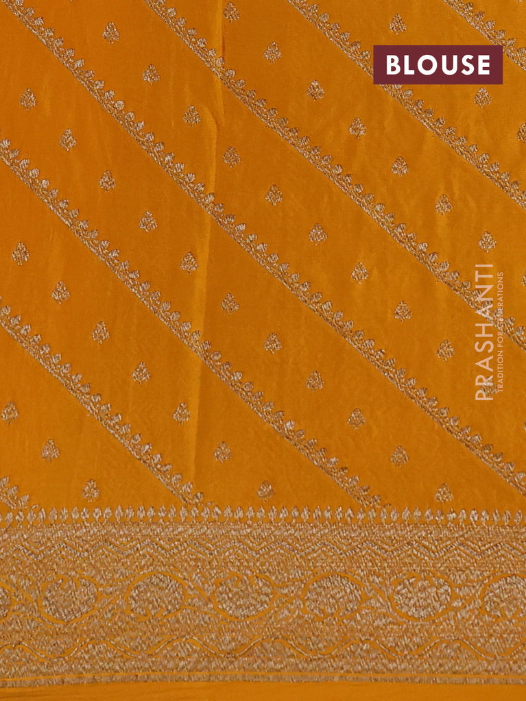 Banarasi crepe saree mustard yellow with half & half style and woven border