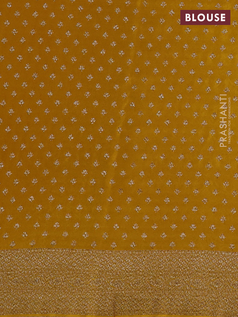 Banarasi crepe saree mustard yellow with allover geometric weaves and woven border